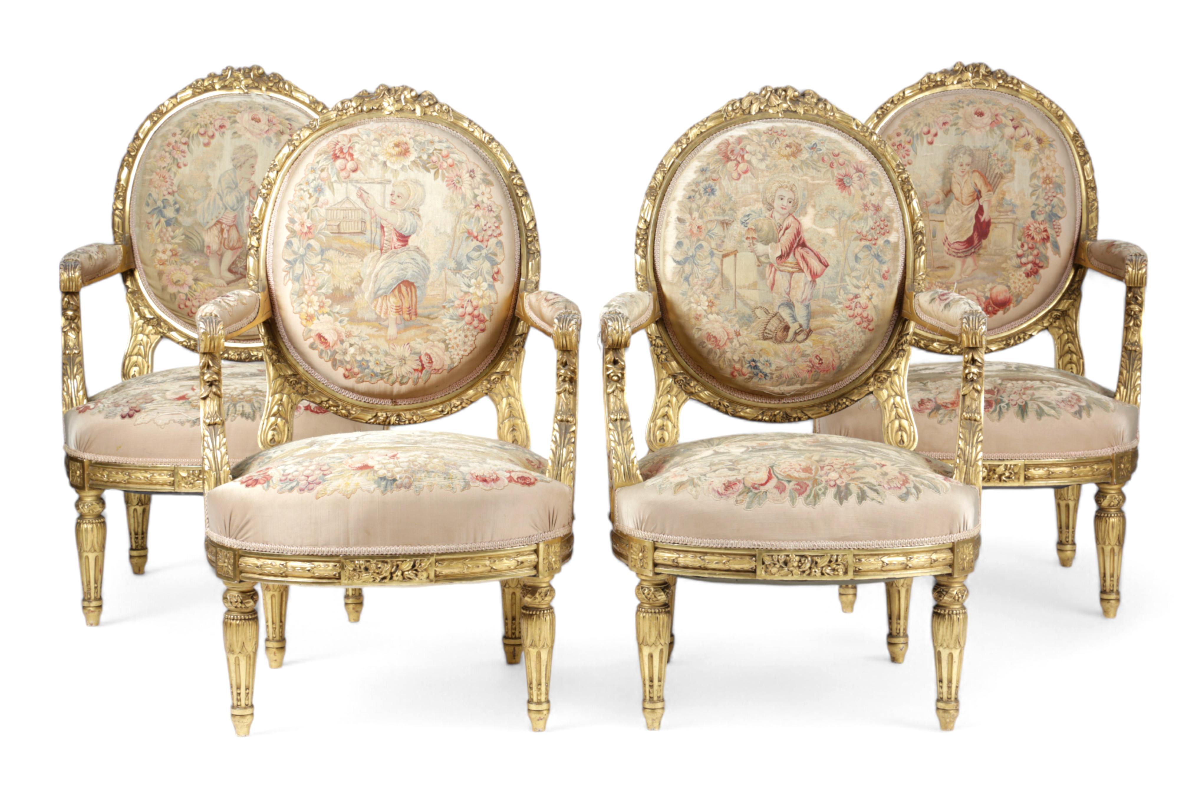 A FRENCH GILTWOOD AND AUBUSSON TAPESTRY SALON SUITE