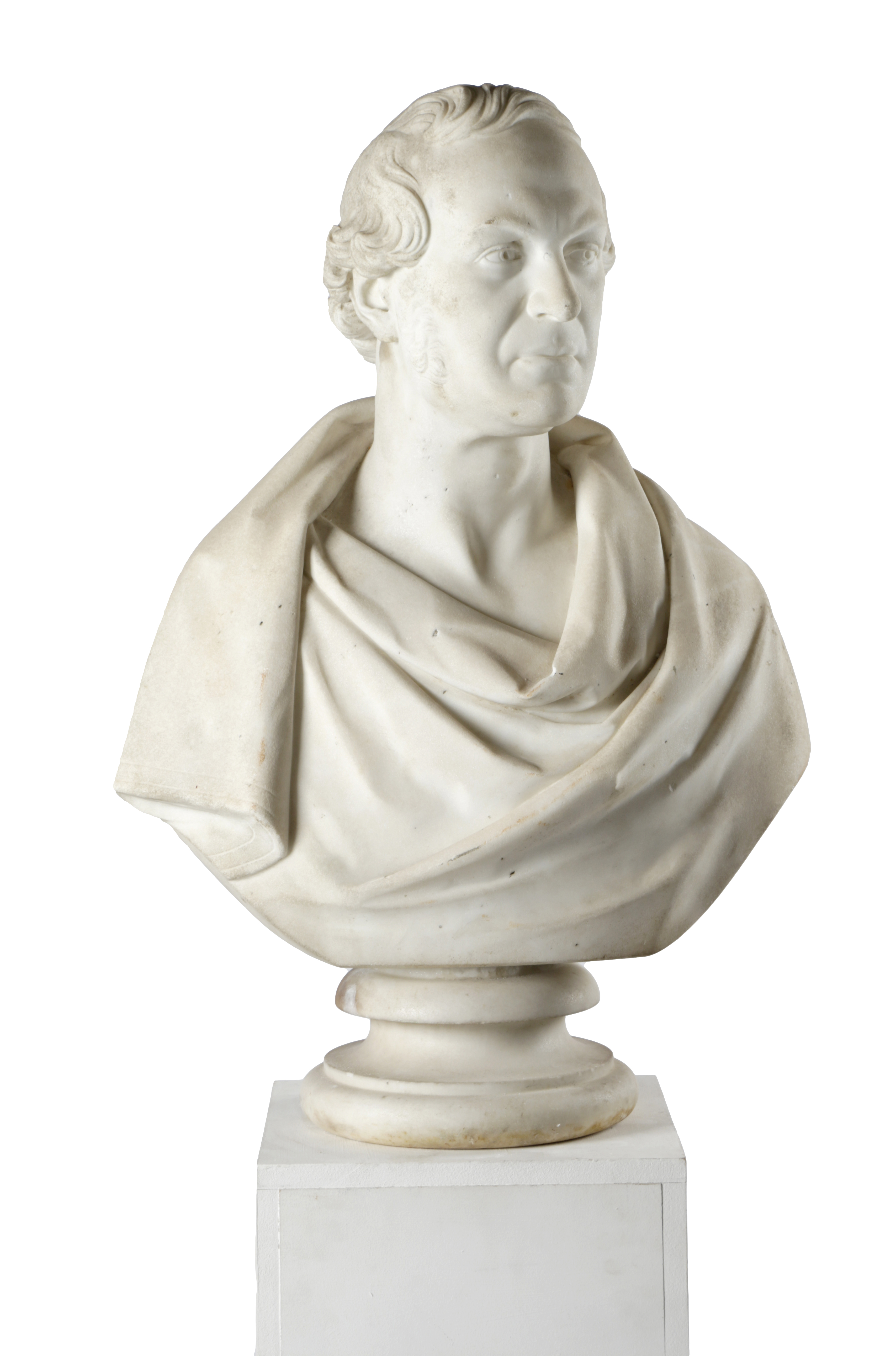 William Calder Marshall (1813-1894) was born in Edinburgh and by 1834 has moved to London where he studied under Edward Hodges Baily and Sir Francis Chantrey. As was normal, he then spent a few years honing his skills in Rome before returning to London where, in 1844 he was elected to the Royal Academy. He became a full member of the Academy in 1852 after he had a marble sculpture of Sabrina, goddess of the River Severn, exhibited at the Great Exhibition in 1851 - a photograph of which is held by the Royal Collections Trust, RCIN 28001155.