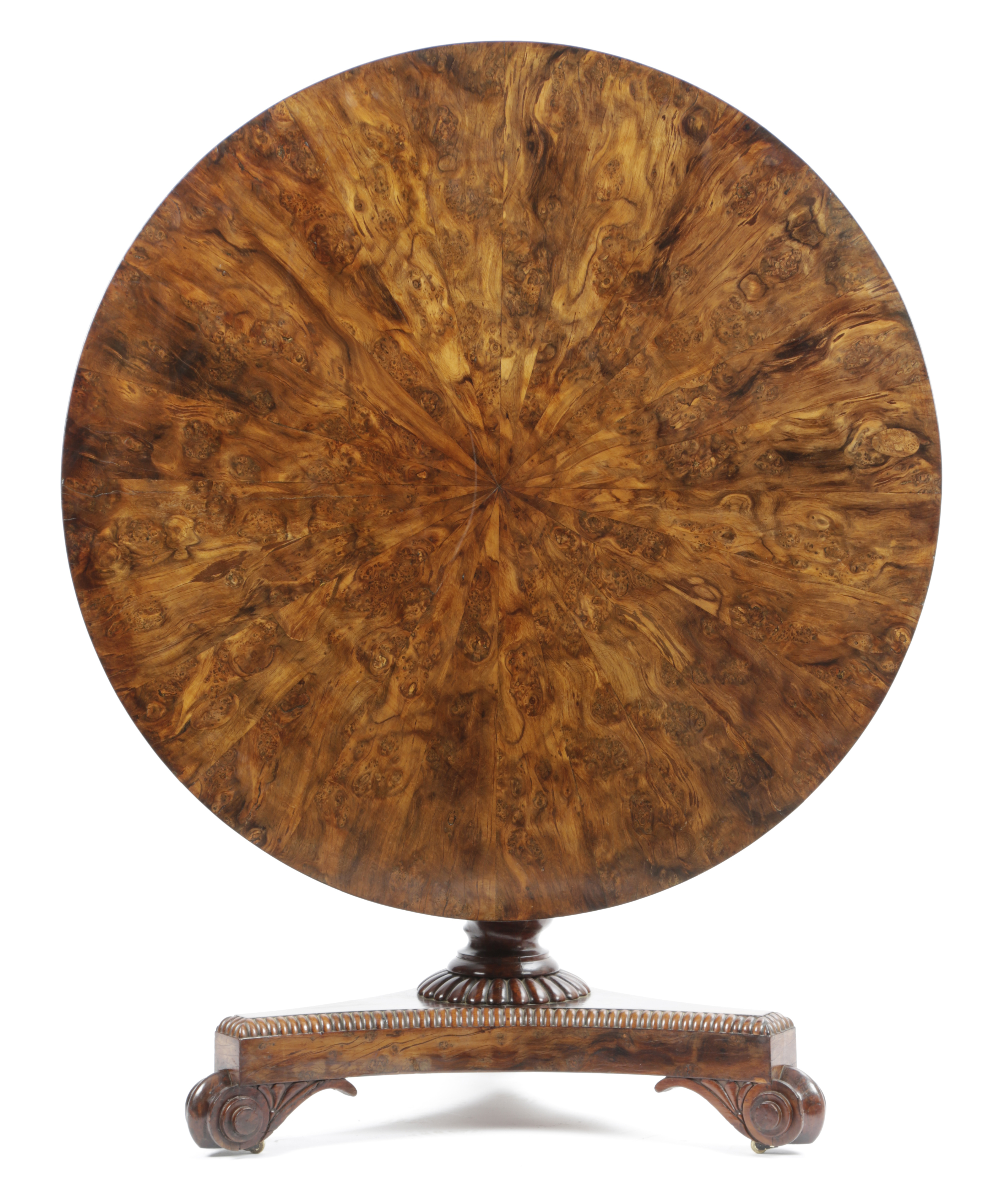 A WILLIAM IV BURR WOOD CENTRE TABLE