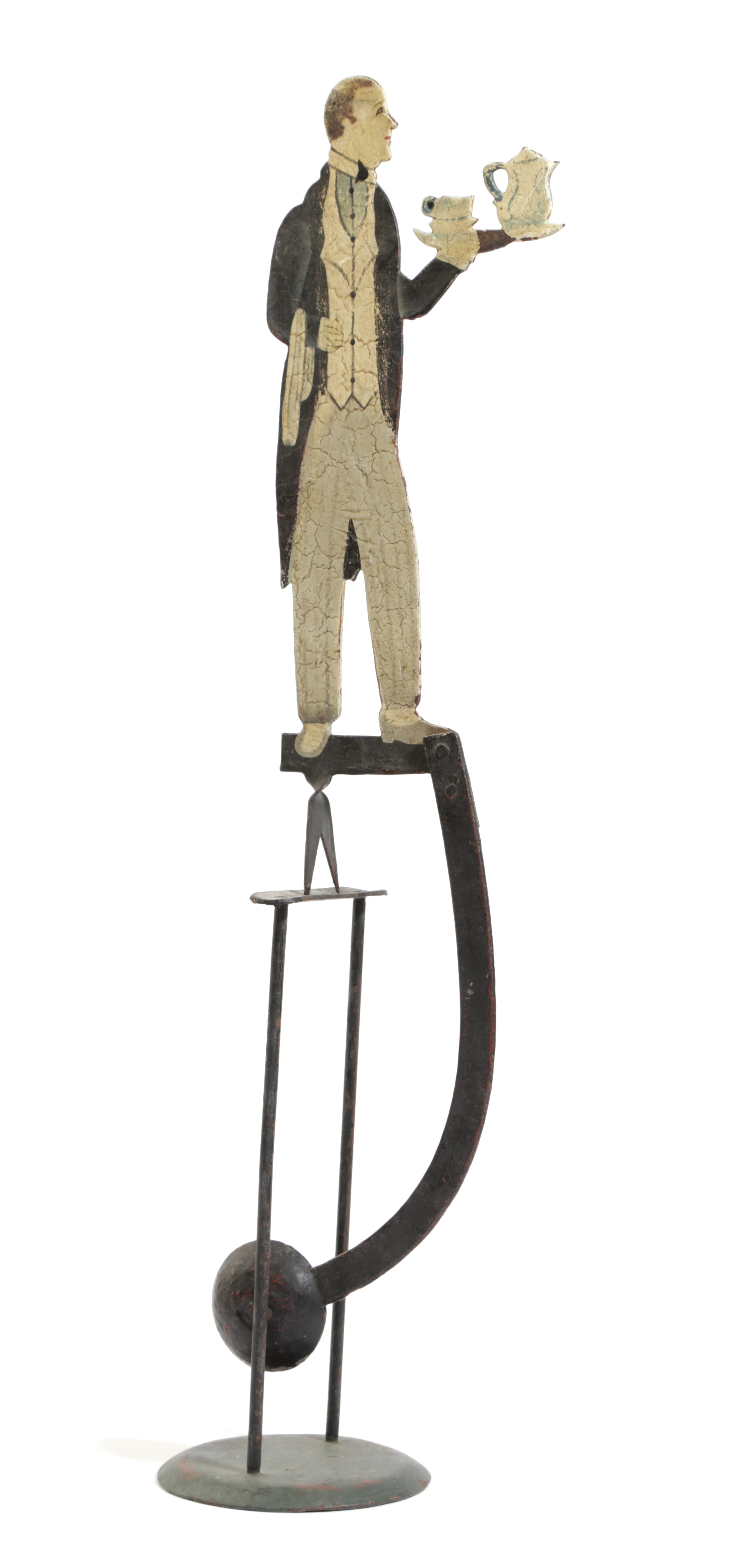 A FOLK ART PAINTED METAL BALANCING WAITER