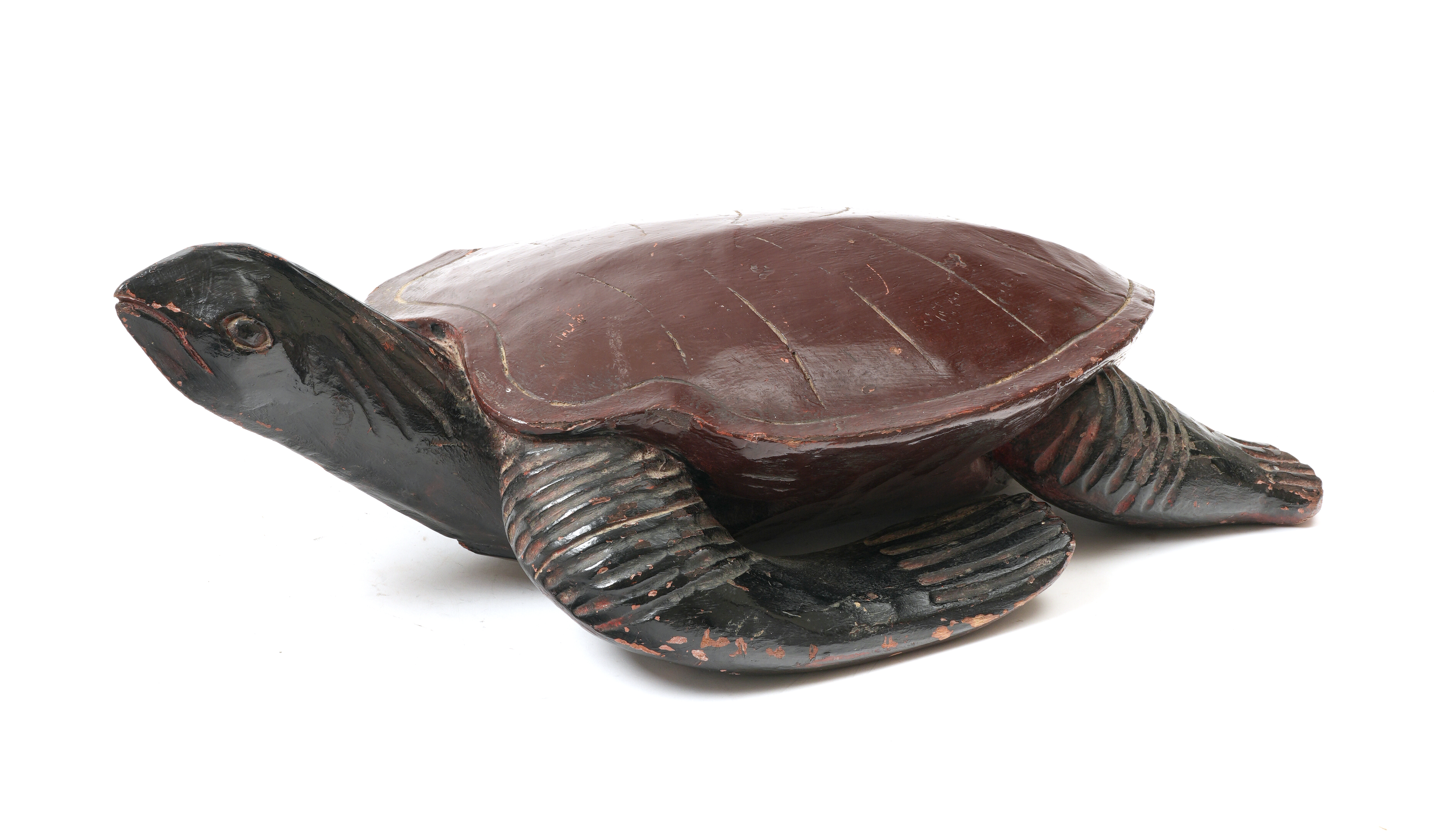 A FOLK ART CARVED AND PAINTED WOOD MODEL OF A TURTLE