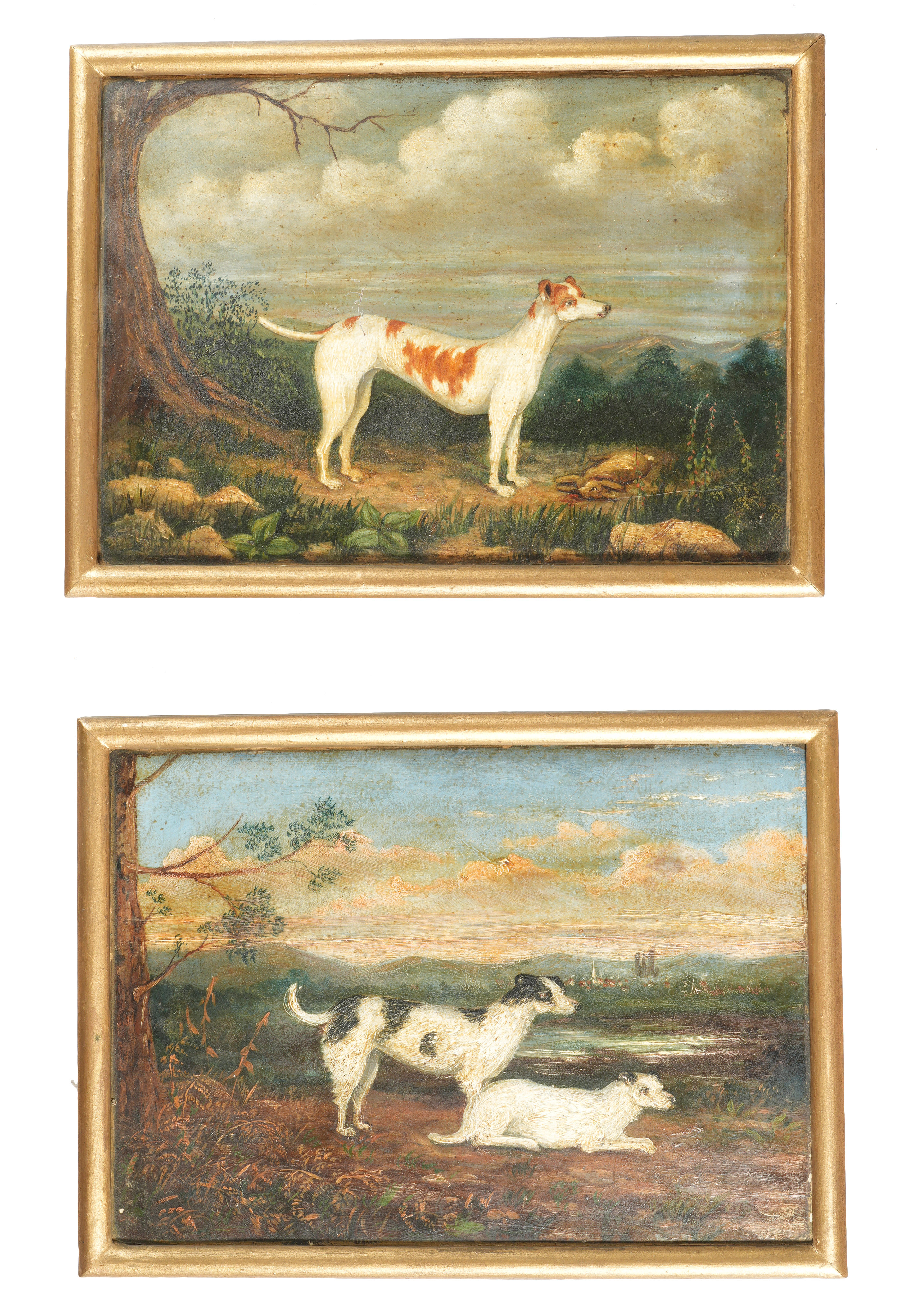 A PAIR OF NAIVE PAINTINGS OF DOGS