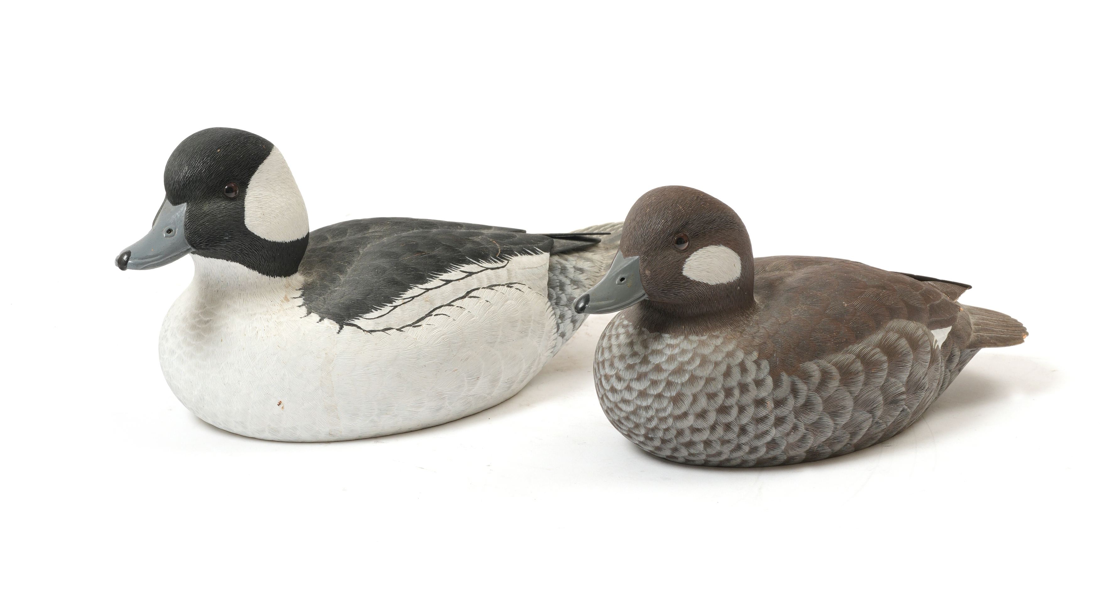 A PAIR OF CARVED AND PAINTED WOOD BUFFLEHEAD DUCKS