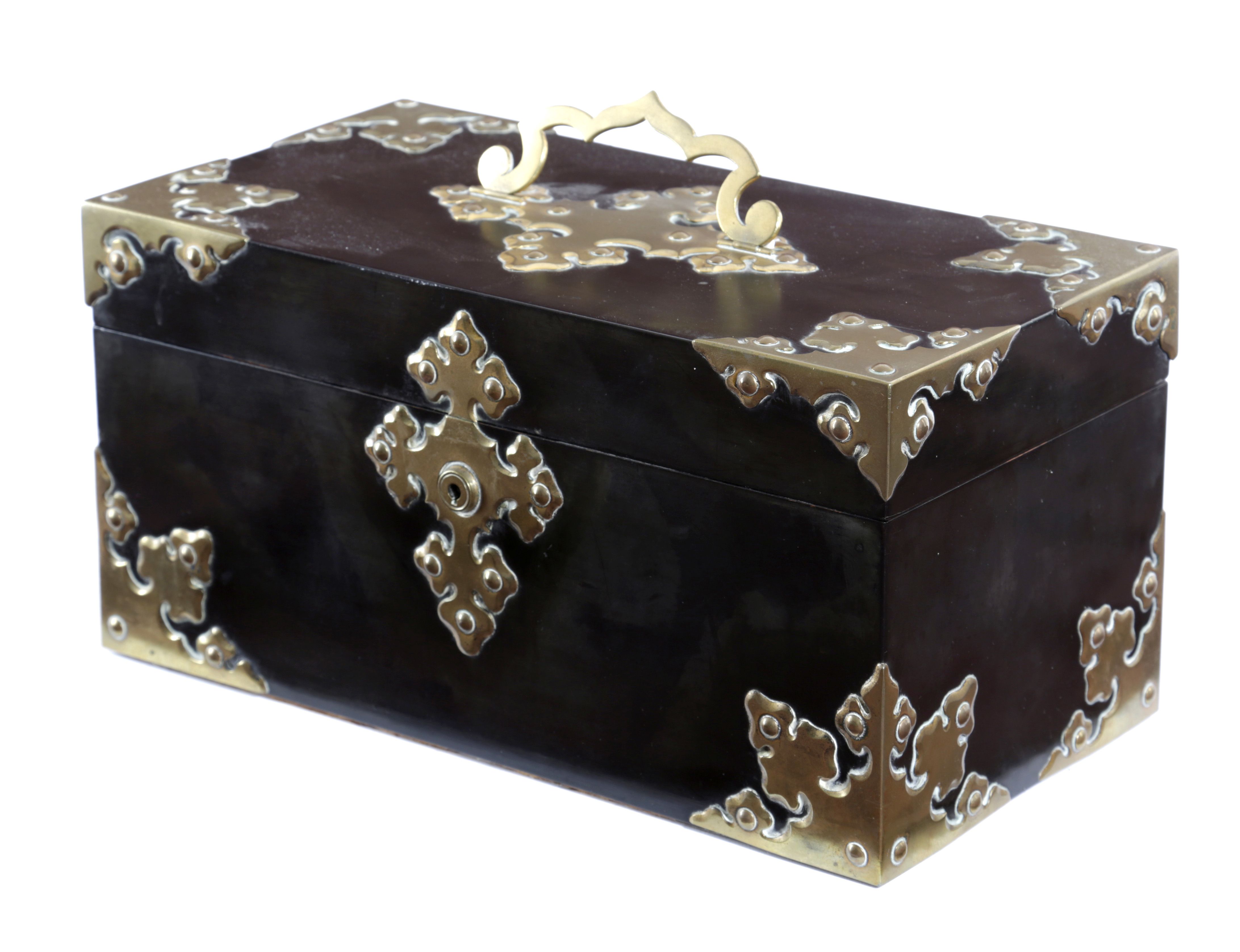 A VICTORIAN EBONY AND BRASS MOUNTED TEA CHEST