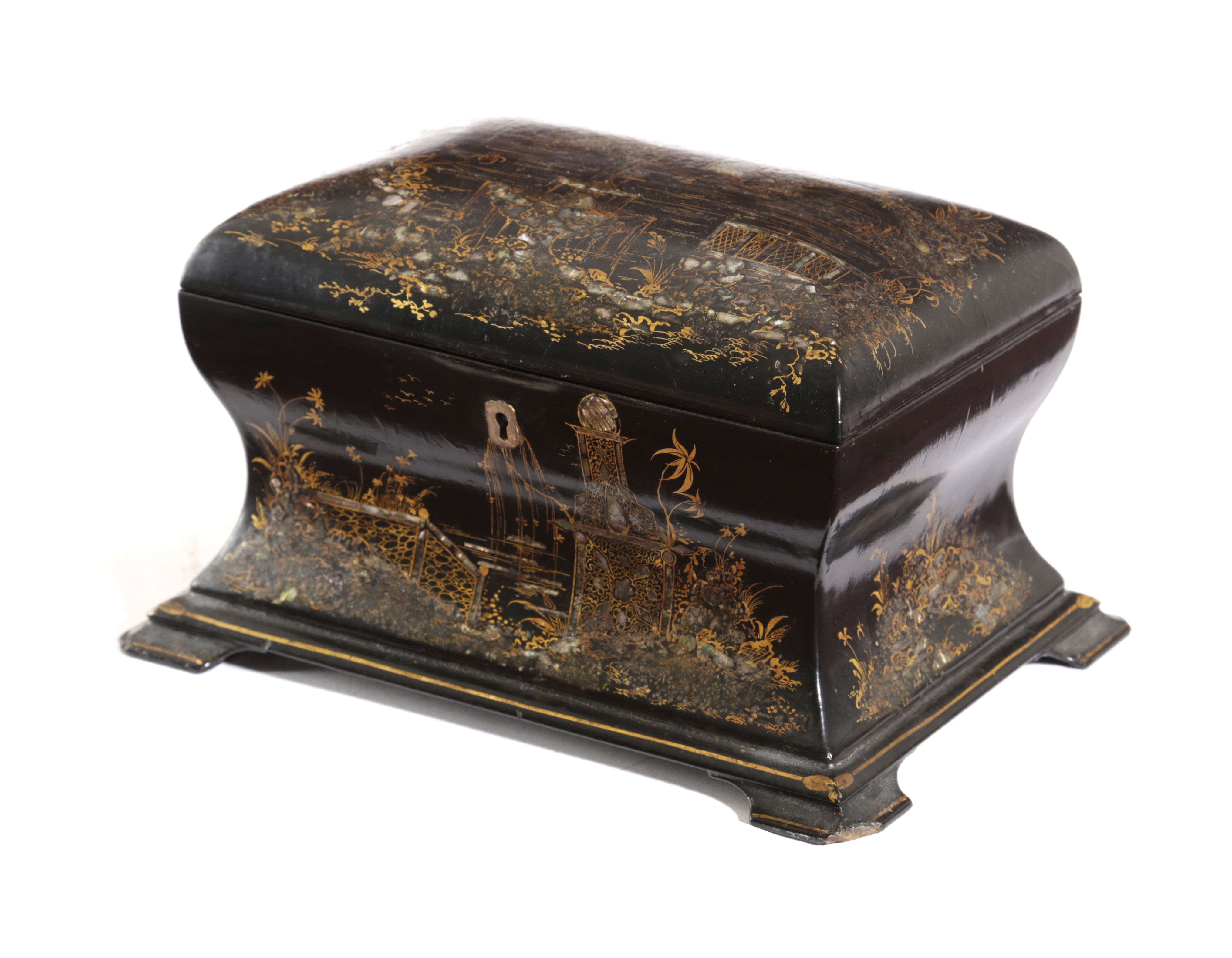 A VICTORIAN PAPIER-MACHE TEA CADDY