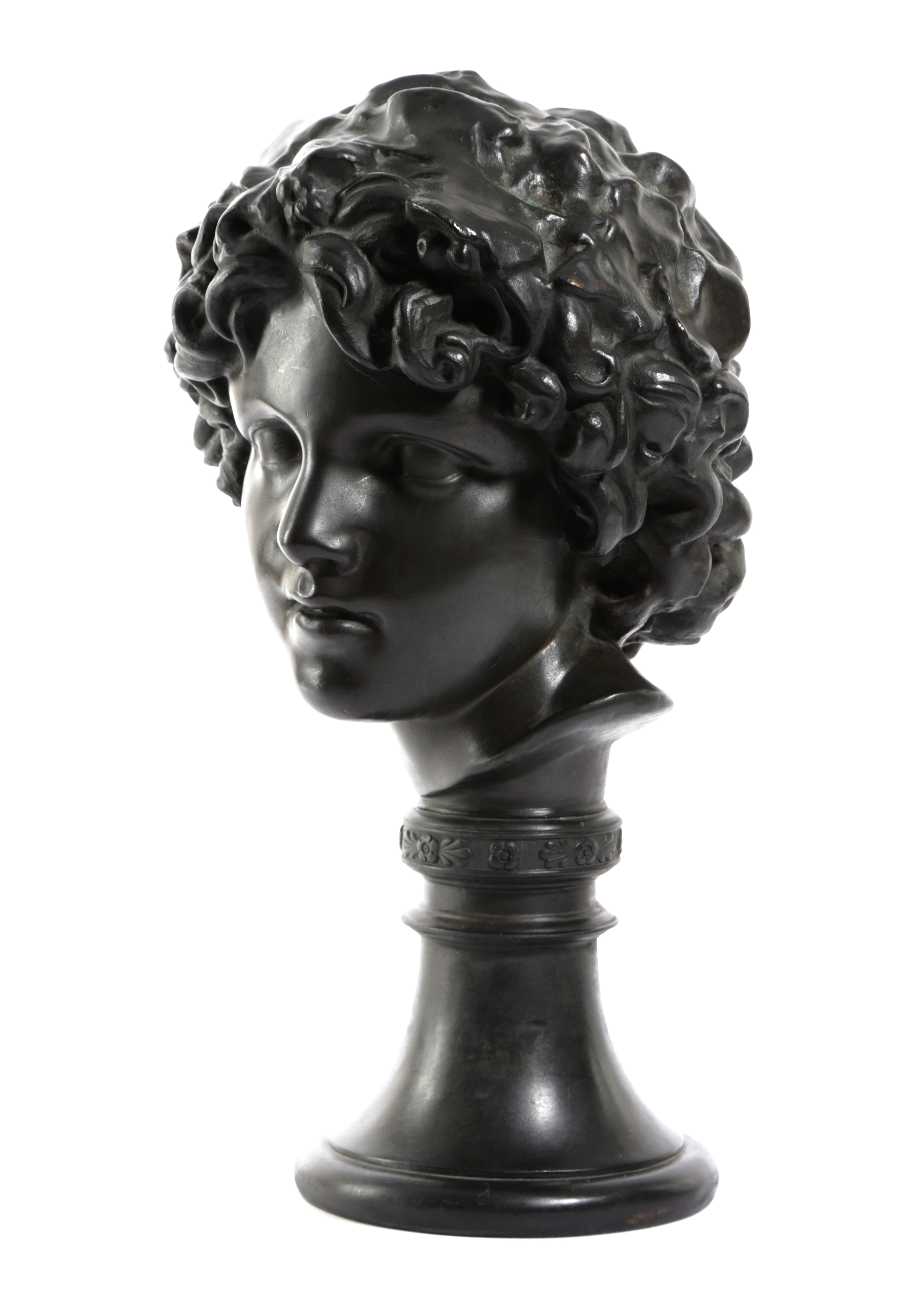 A FRENCH PATINATED BRONZE BUST OF A YOUNG MAN