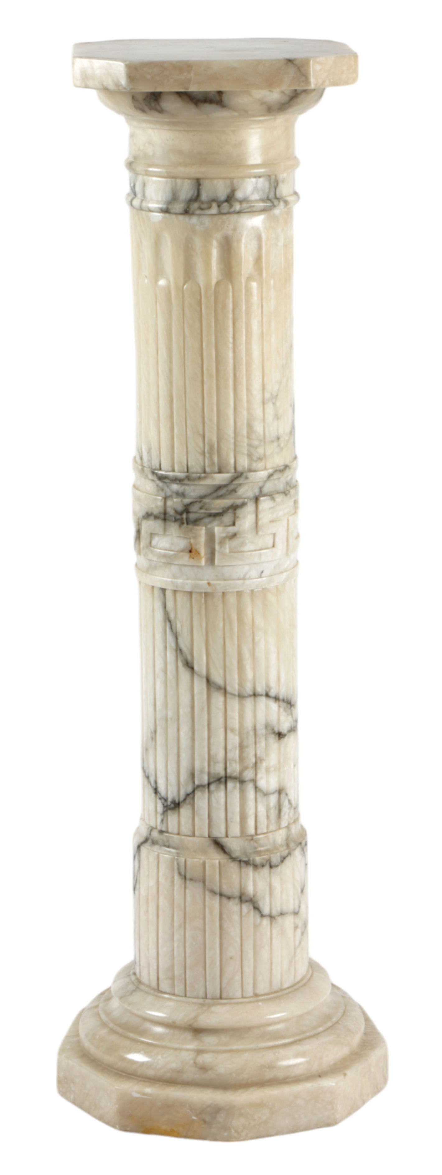 the revolving top with canted corners above a fluted stem with a stylised Greek key band