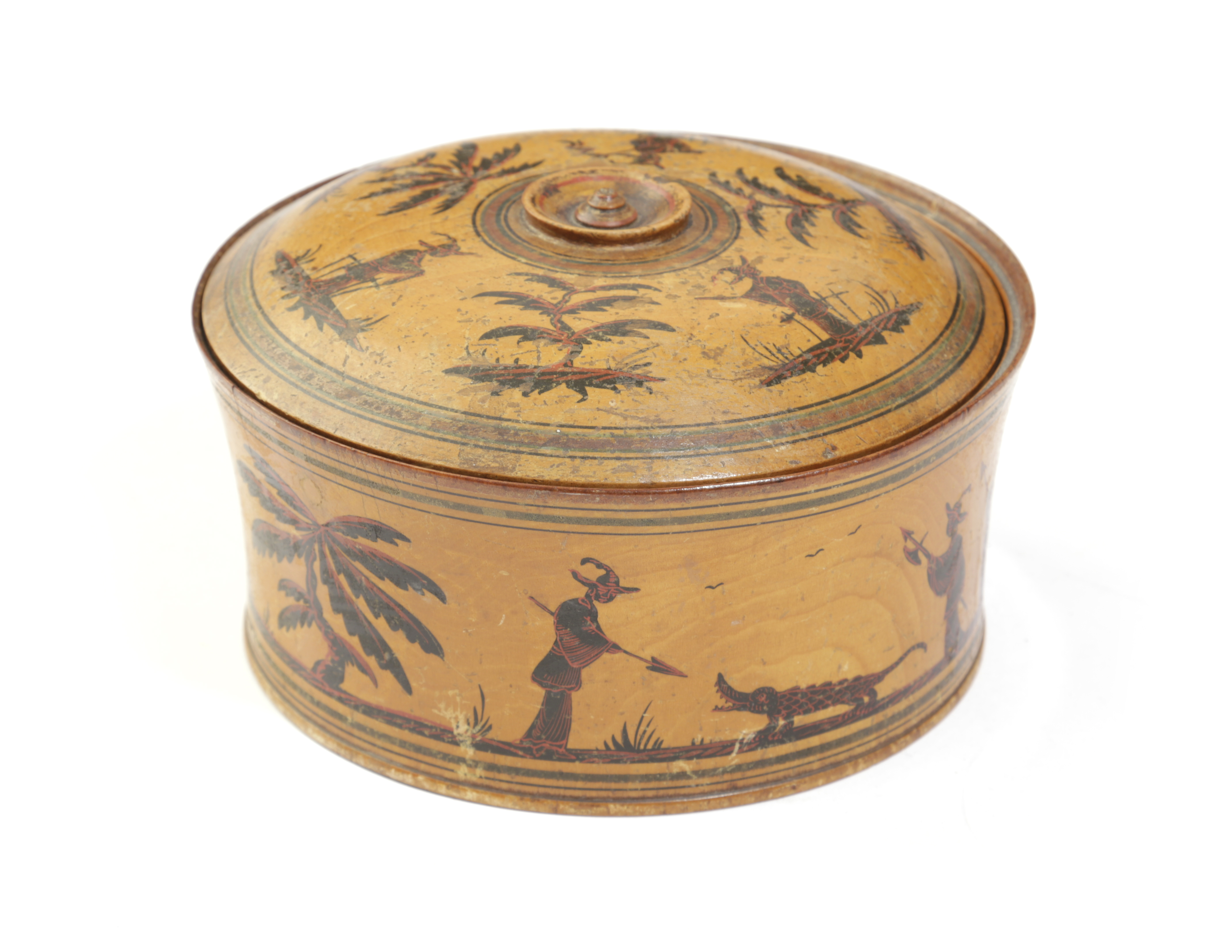 A REGENCY PAINTED BOXWOOD BOX AND COVER