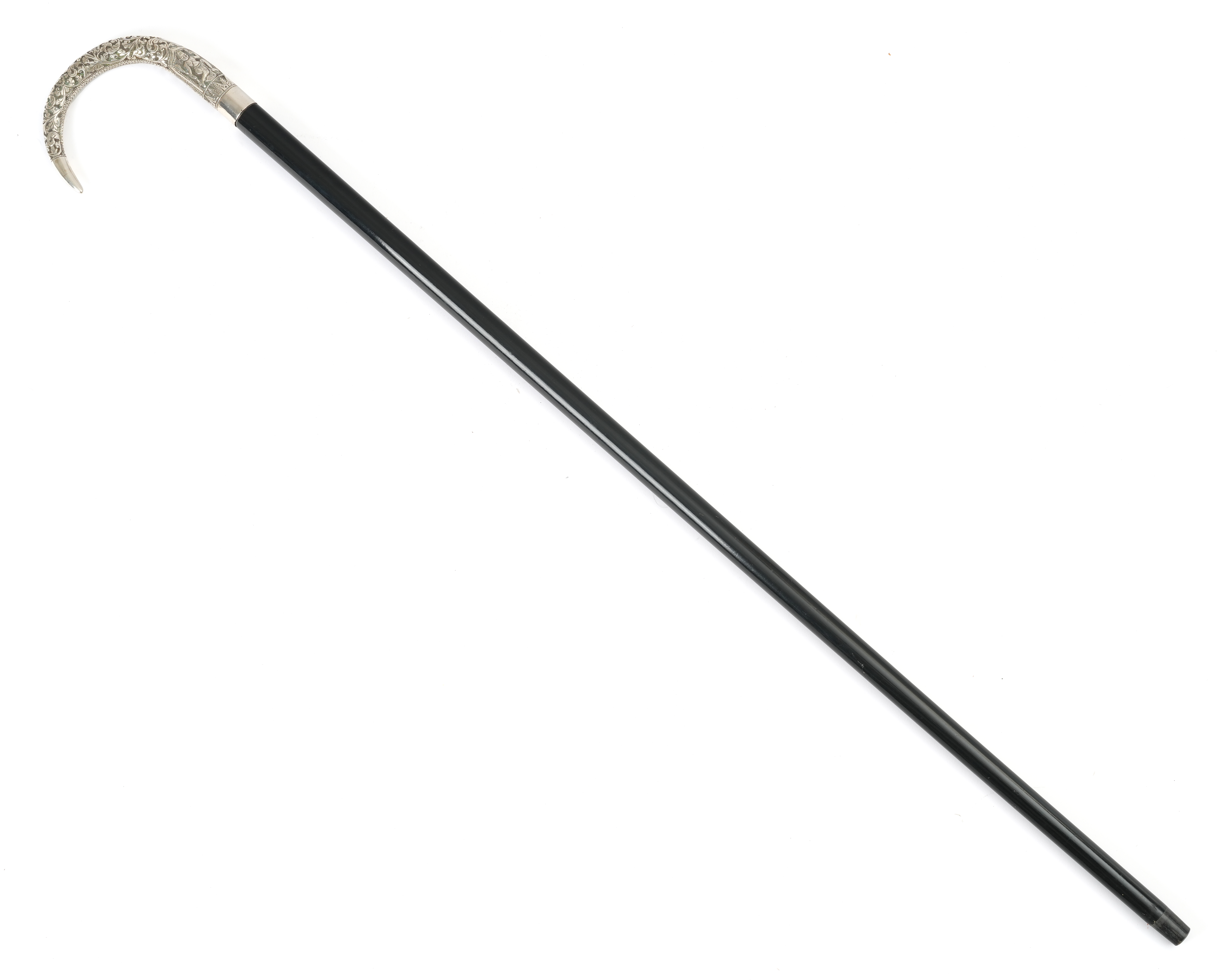A BURMESE SILVER HANDLED WALKING CANE