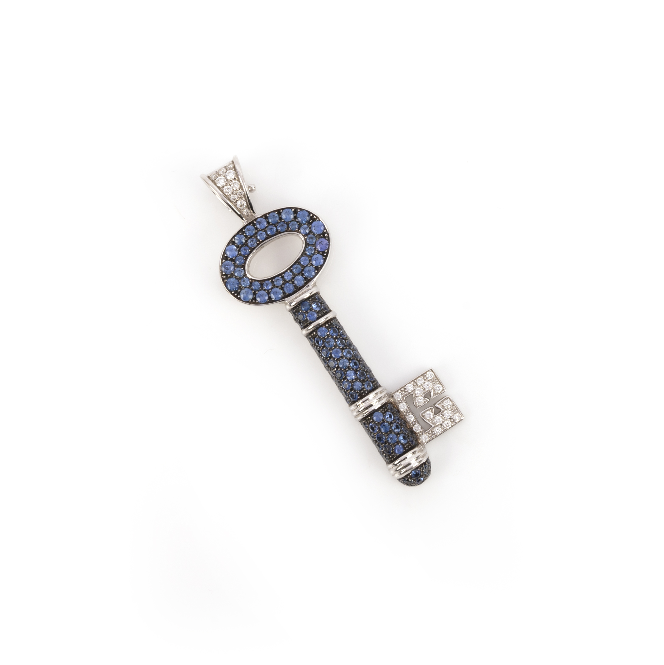Theo Fennell, a sapphire and diamond pendant, 2005, designed as a key pavé-set with circular-cut