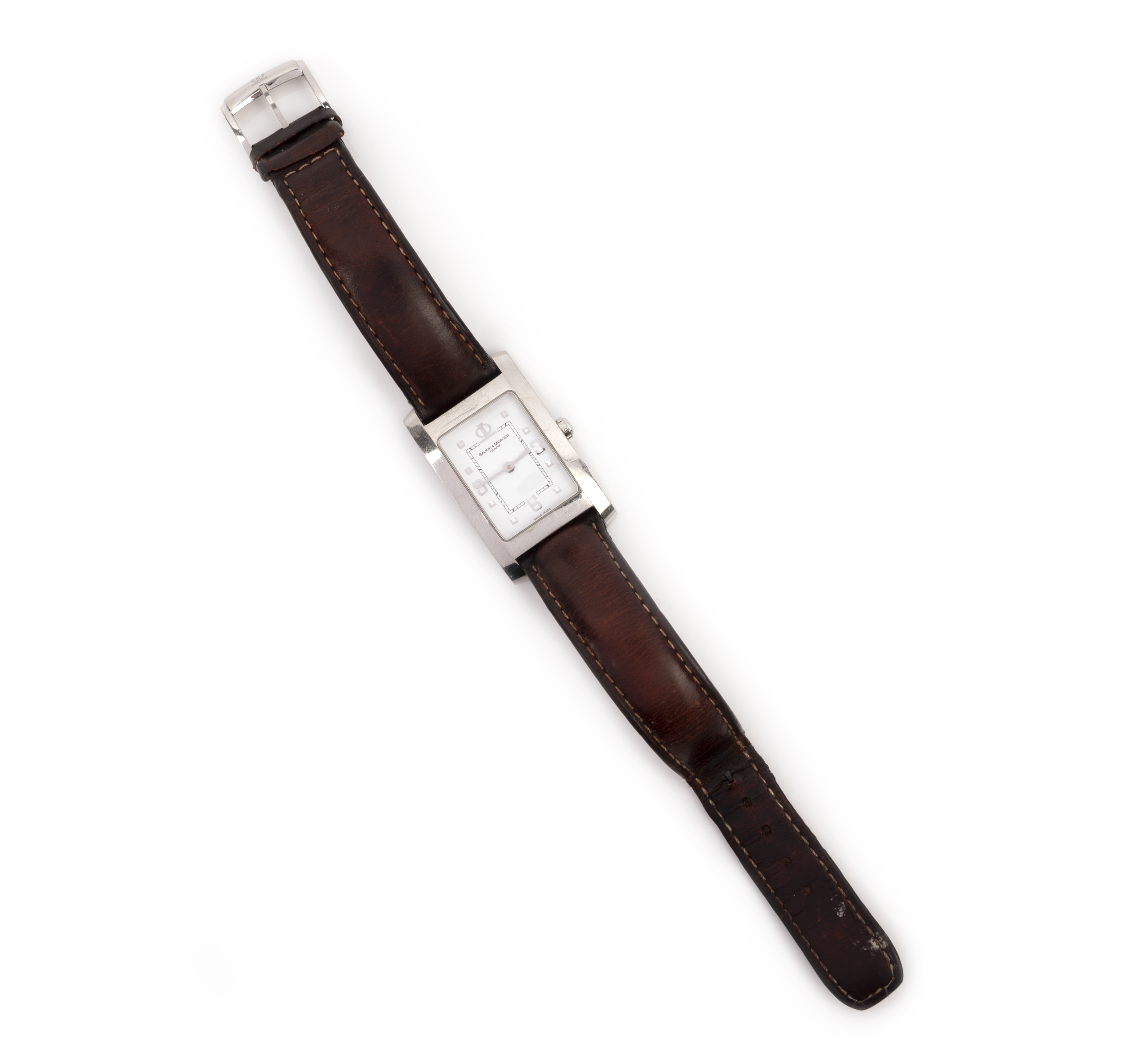 Baume & Mercier, a stainless steel 'Hampton Quartz' wristwatch, ref. 65434, the rectangular white dial square indicators and steel hands, to a plain stainless steel case and leather strap, case width 2.4cm, dial and case signed Baume & Mercier, case back numbered 4472204 and 65434, quartz movement
