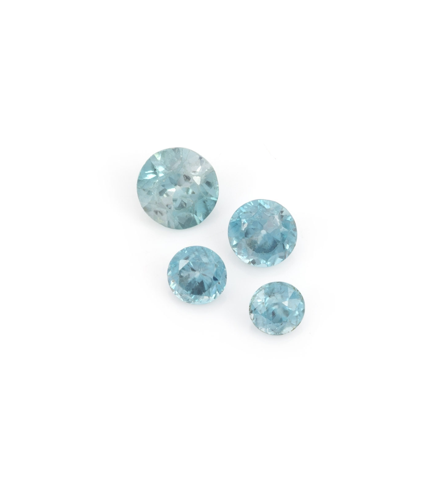 Four loose zircons, the four circular-cut blue zircons weighing a total of 10.40 carats