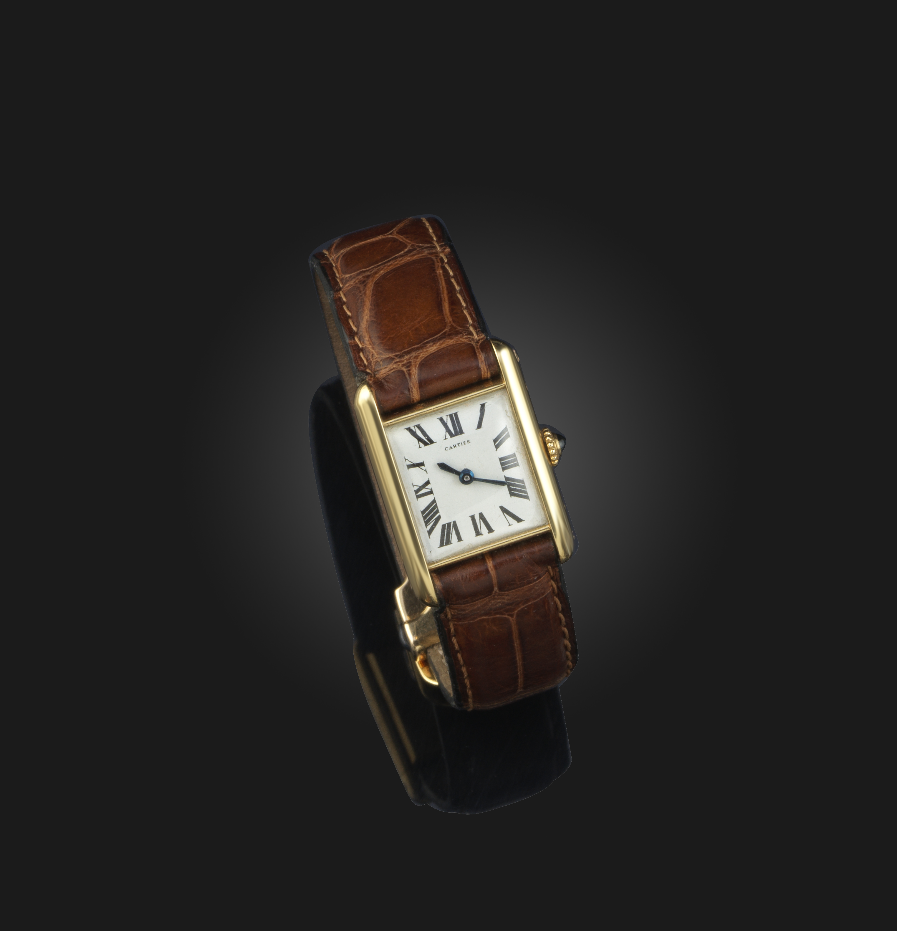 Cartier, a lady's gold tank Louis Cartier reference 7532, signed white enamel dial, with black Roman