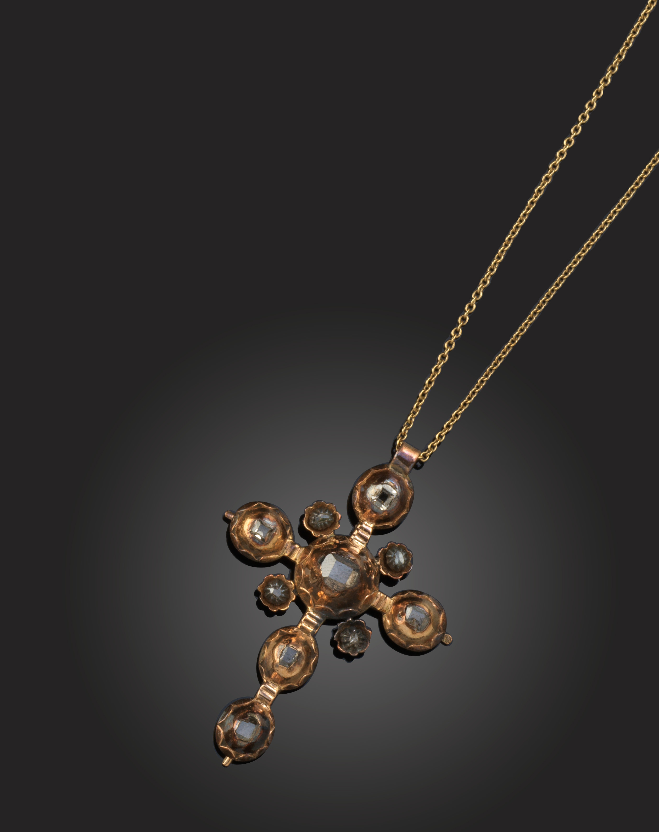 An 18th century diamond pendant, designed as a cruciform set with diamonds in raised yellow gold