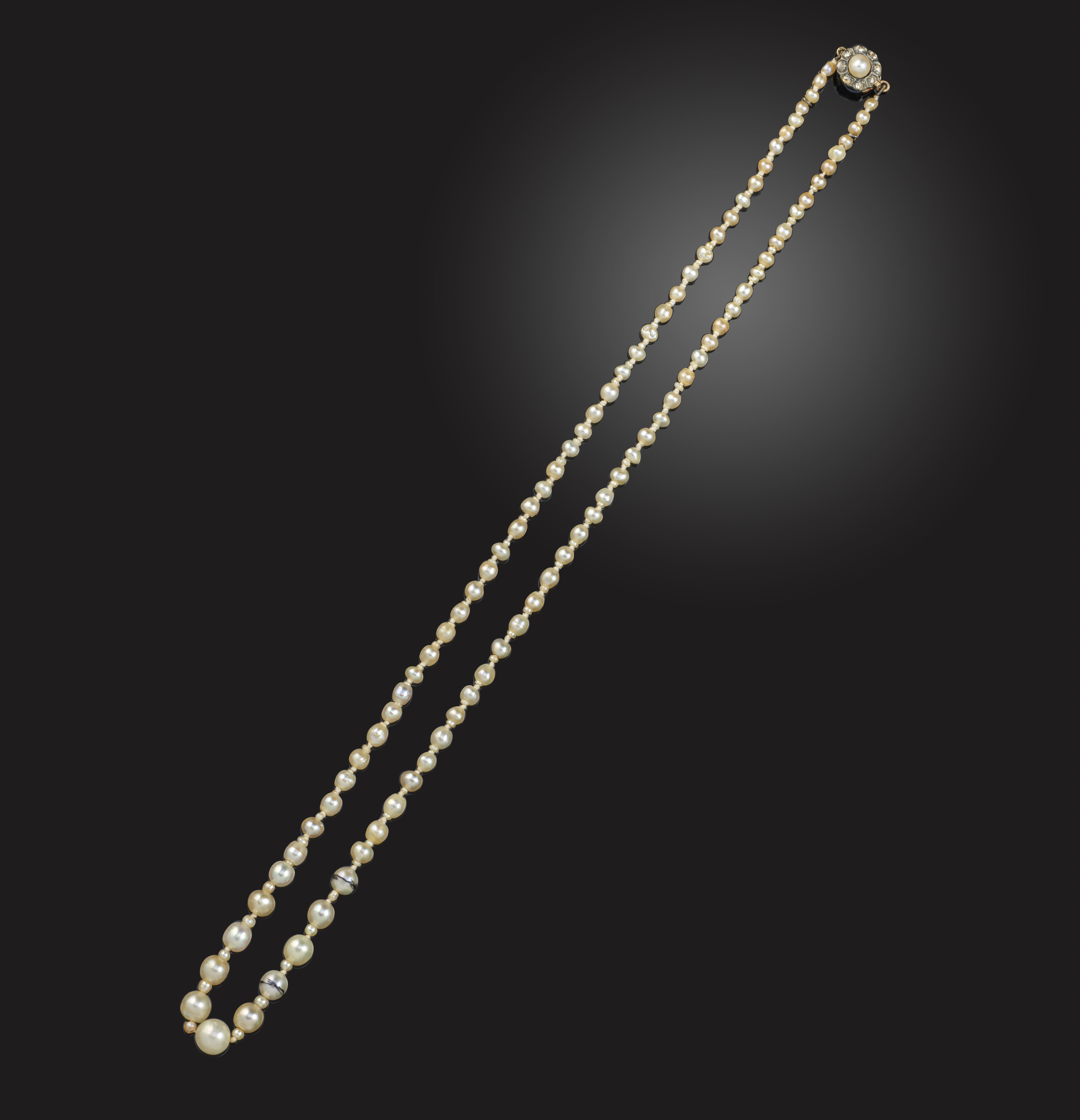 A natural pearl necklace, early 20th century, designed as a single strand of graduated natural,