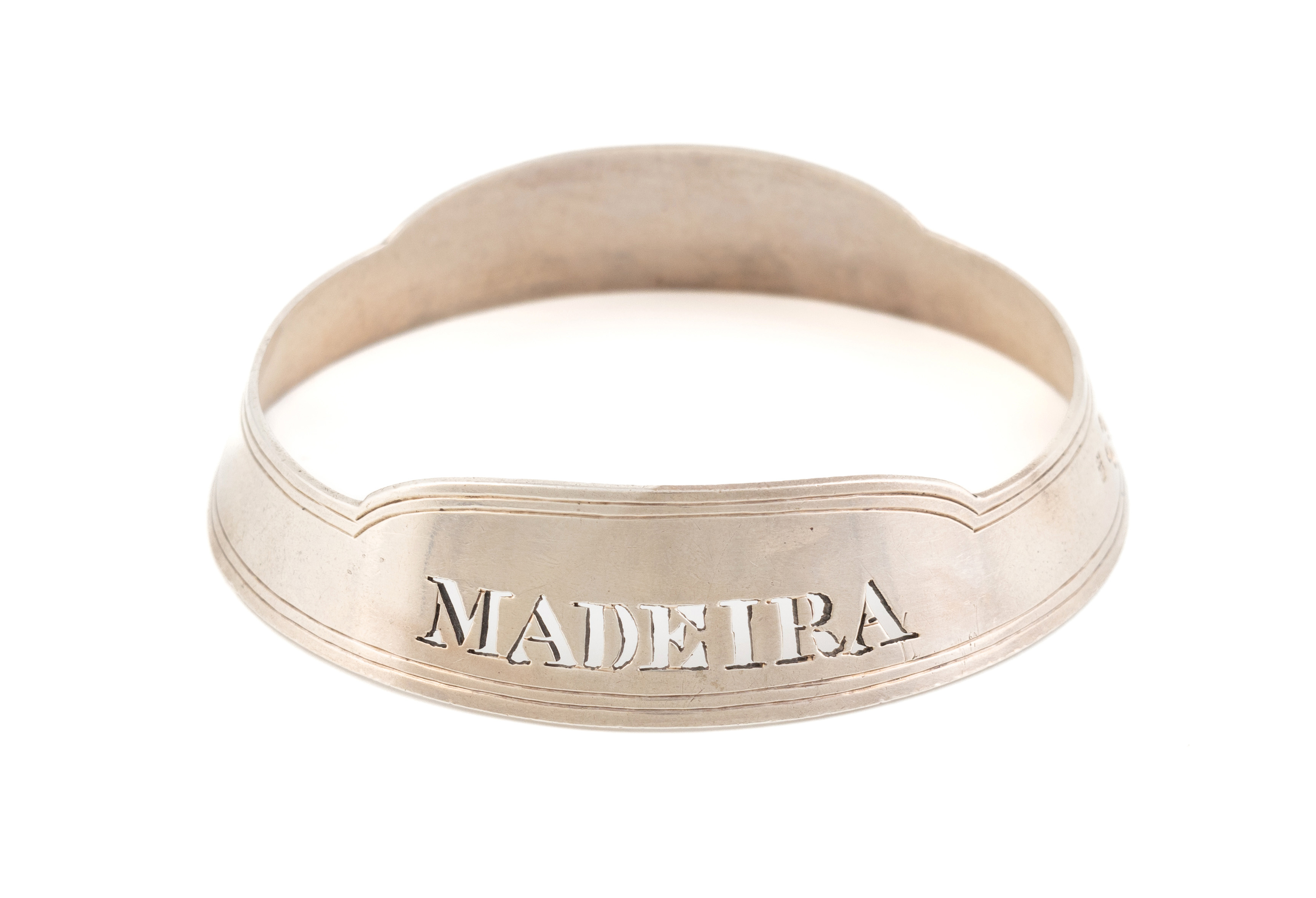circular form with a reeded border, pierced 'Madeira', engraved with a crest, diameter 7.9cm, approx. weight 1oz.