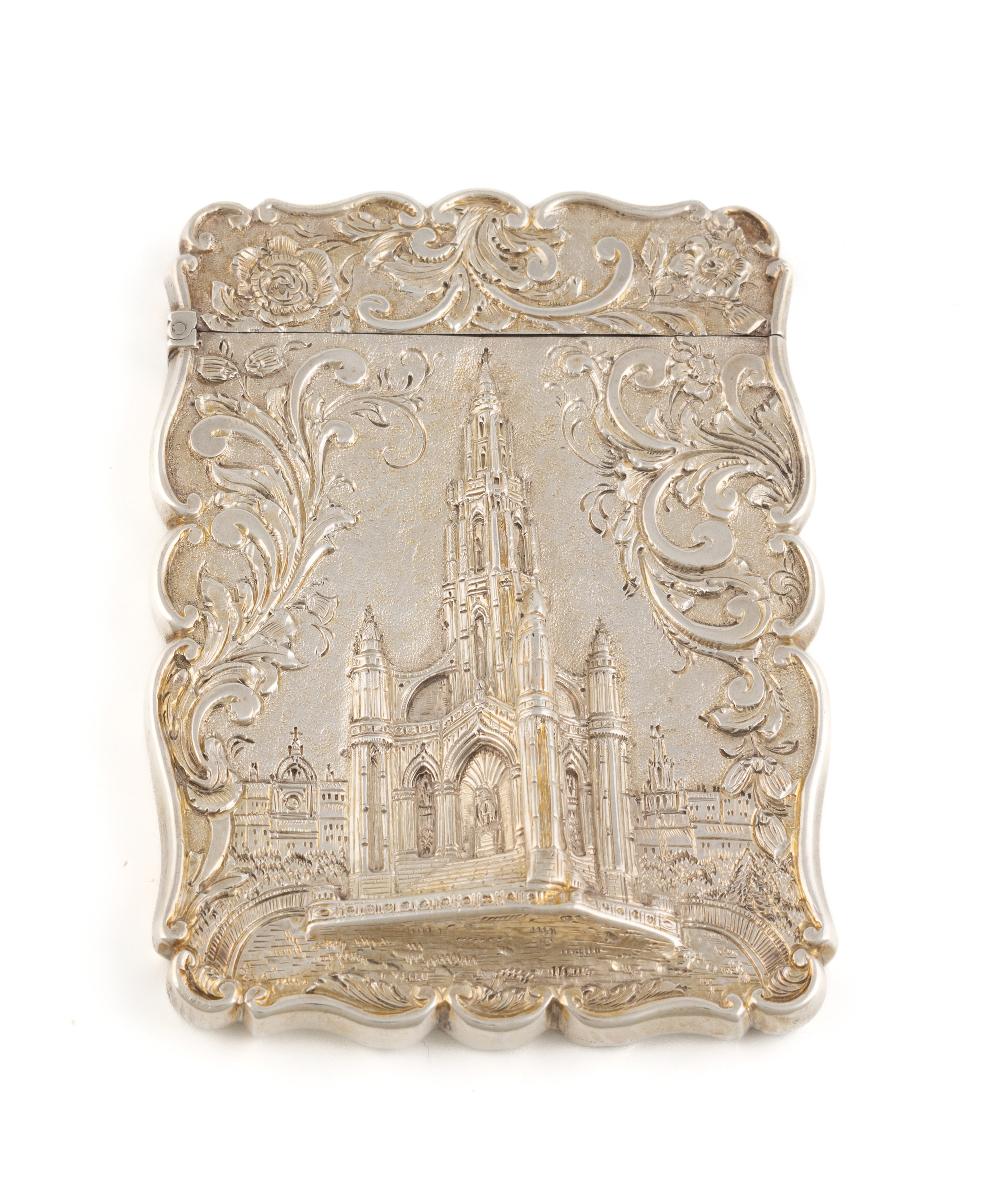 A Victorian silver 'castle-top' card case, The Scott Memorial,