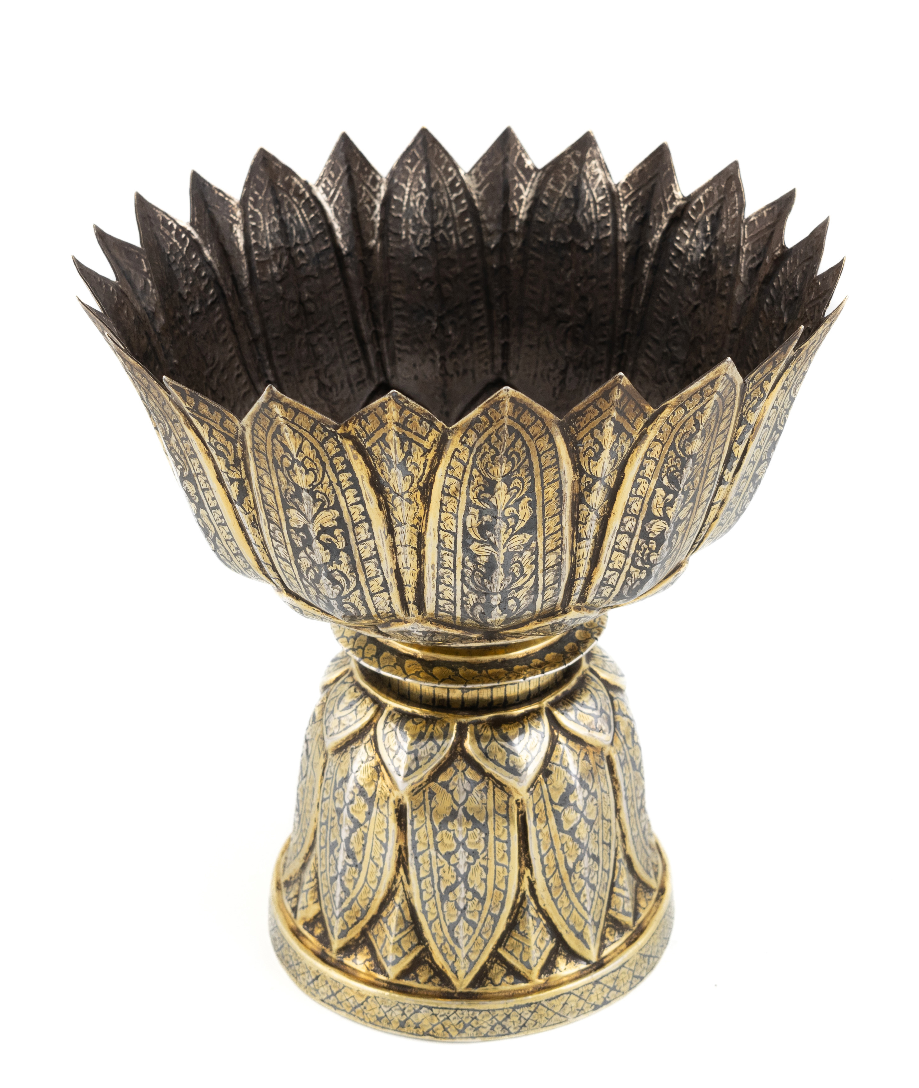 A 19th century Thai silver and silver-gilt and niello work tazza/footed bowl,