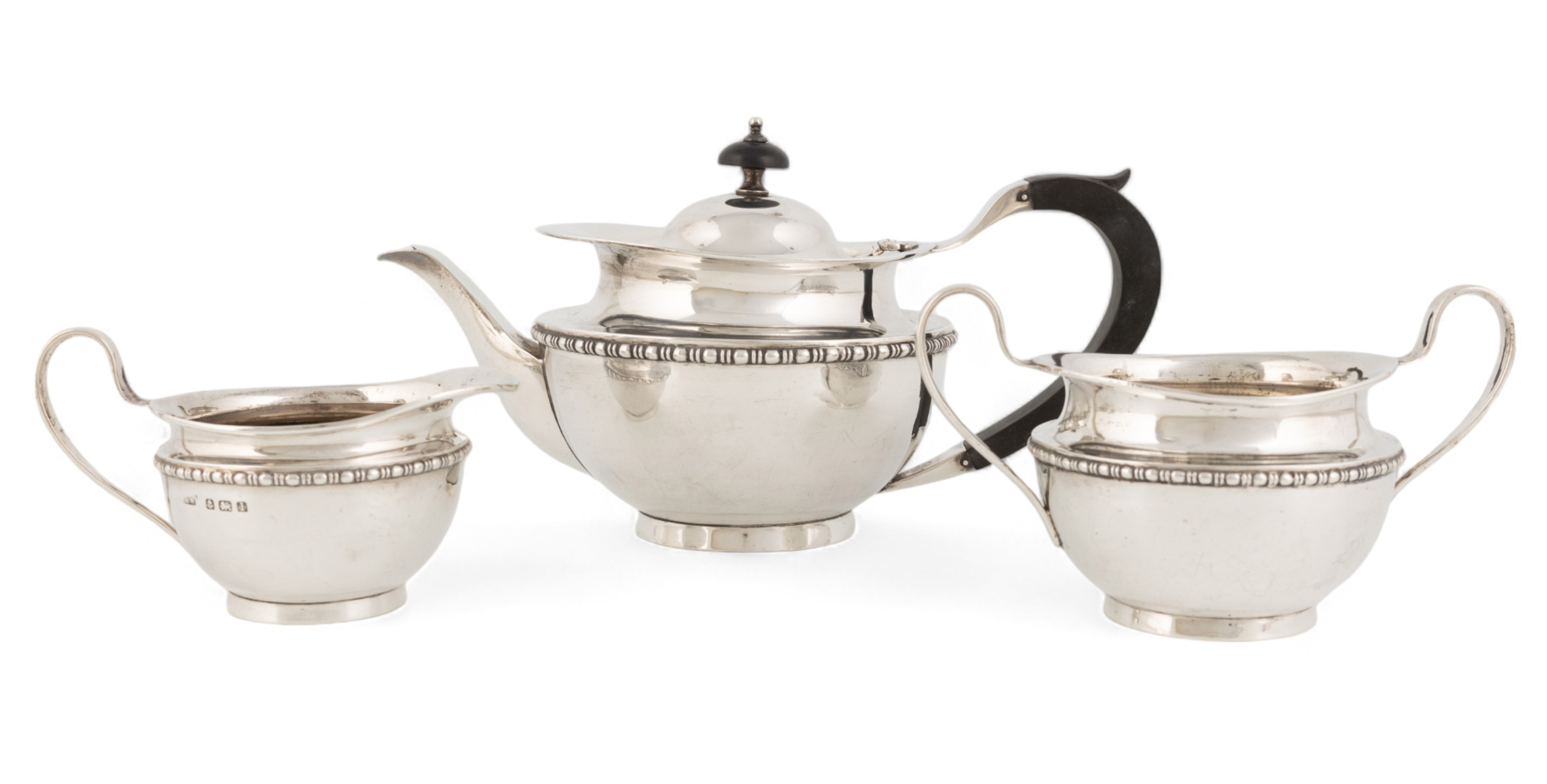 A silver three-piece tea set,