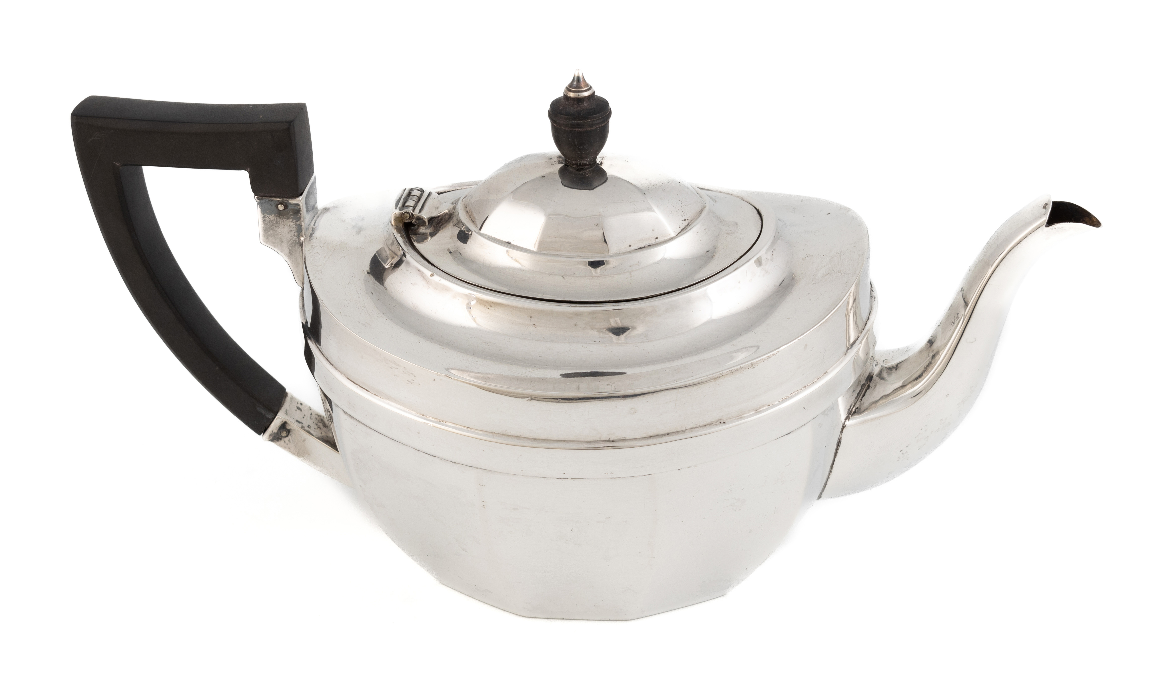 A silver teapot,