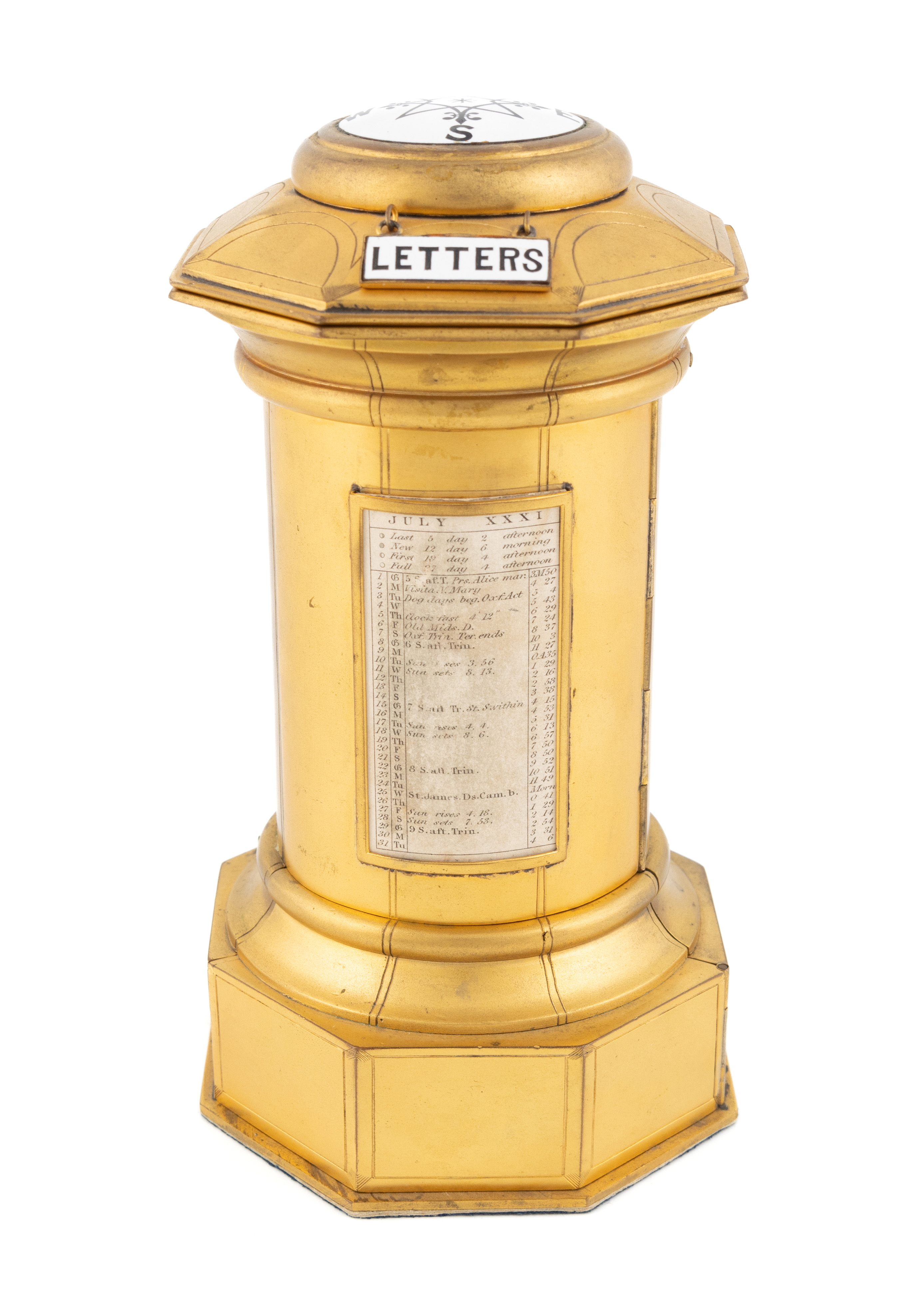 A Victorian novelty gilt metal combination pillar box,