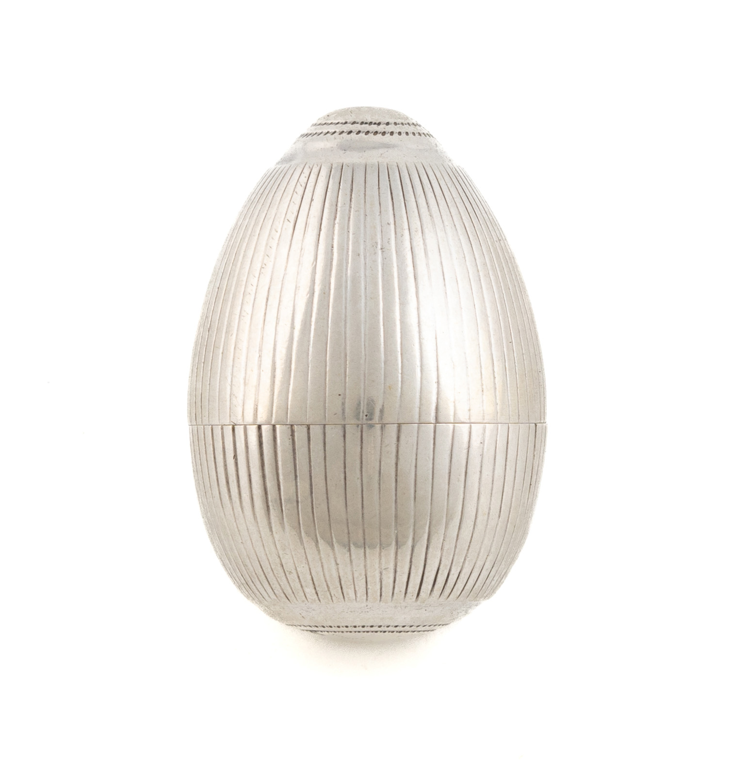 egg form, fluted decoration, the interior with a steel grater, length 4cm, approx. weight 0.8oz.