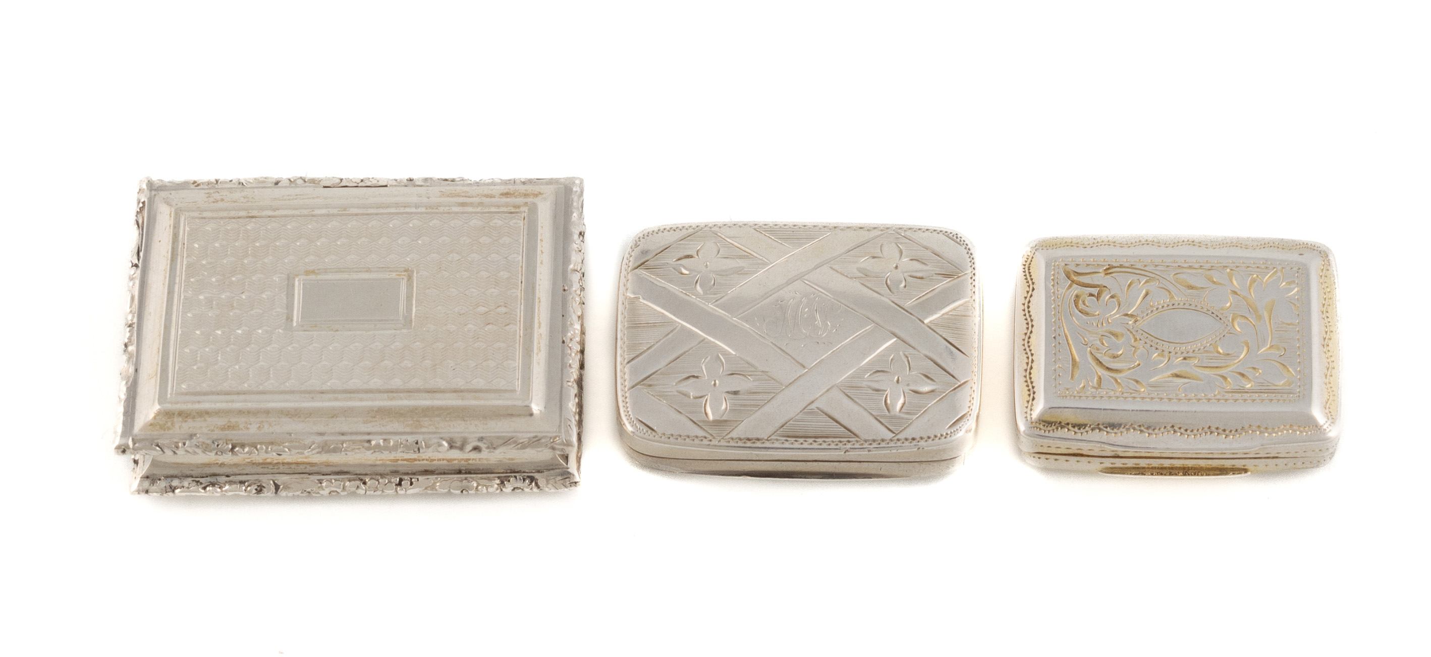 comprising: one by Ledsam, Vale & Wheeler, Birmingham 1829, engine-turned decoration, plus one by Matthew Linwood, Birmingham 1814, and one other, Birmingham 1823, approx. weight 1.4oz. (3)