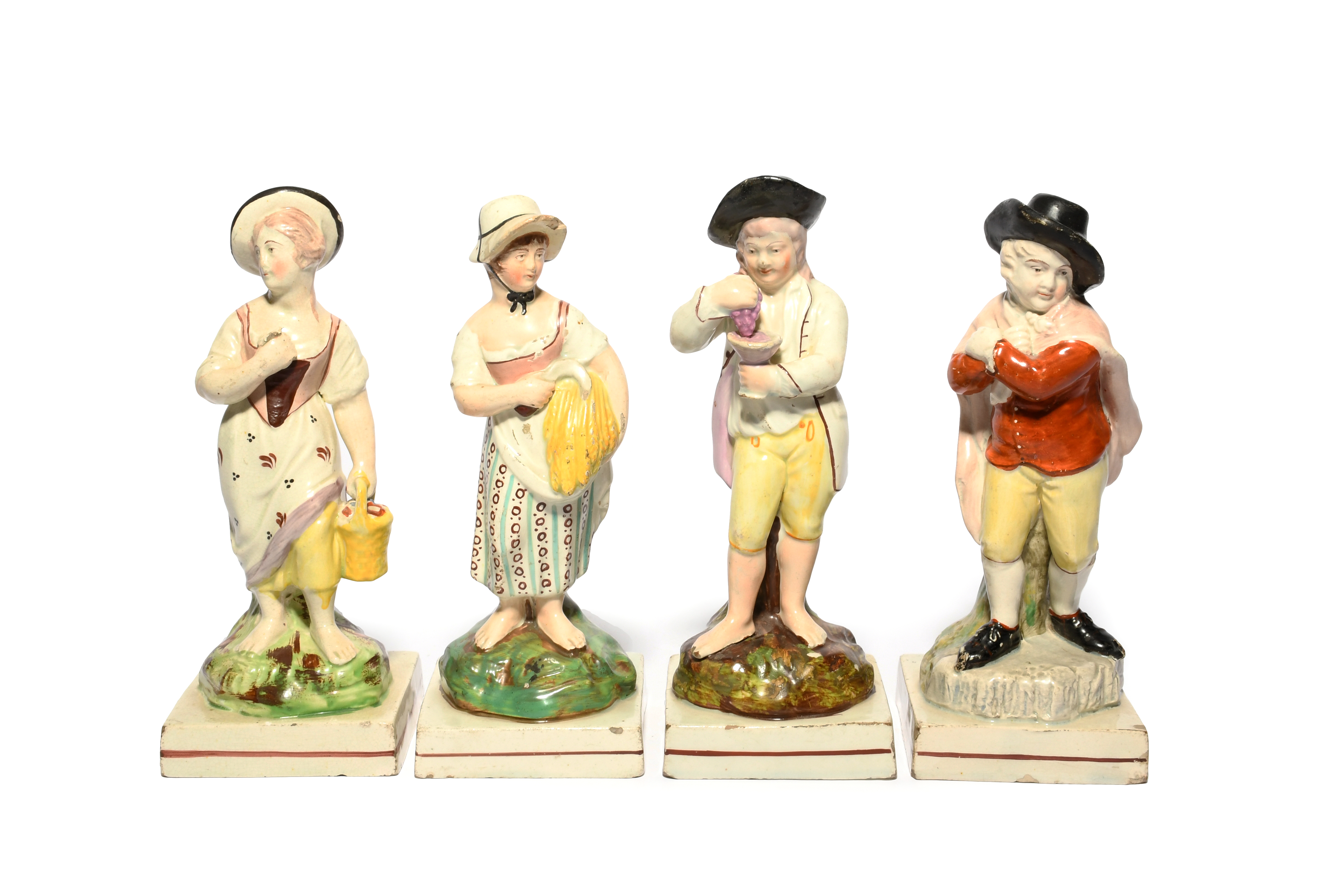 A set of Staffordshire figures of the Four Seasons, c.1800-10, possibly Enoch Wood, modelled as