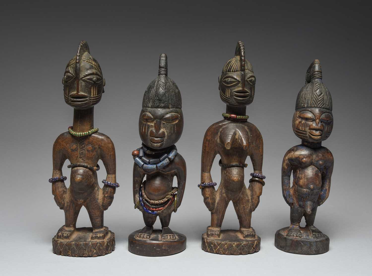 and a matched pair of Yoruba Ibeji male figures, 25cm high. (4)