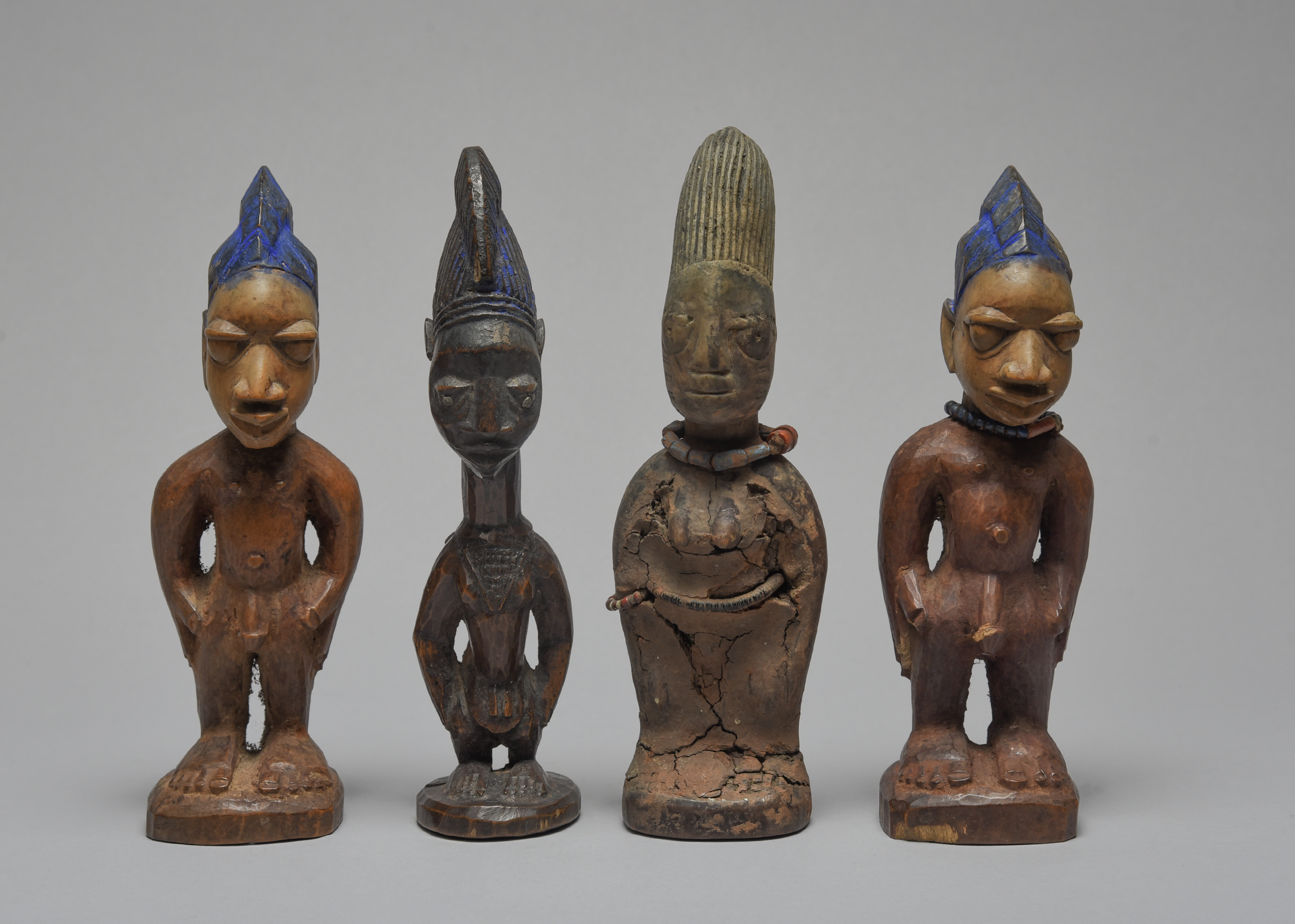 including a pair of males, one with glass beads, a male with an Islamic neck amulet tirah, and a female with beads,