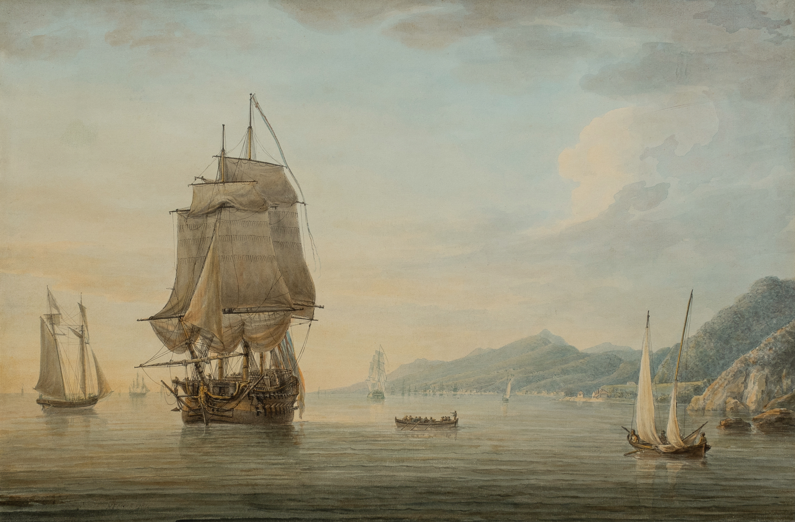A Royal Navy frigate of 44-guns getting underway off Port Royal, Jamaica