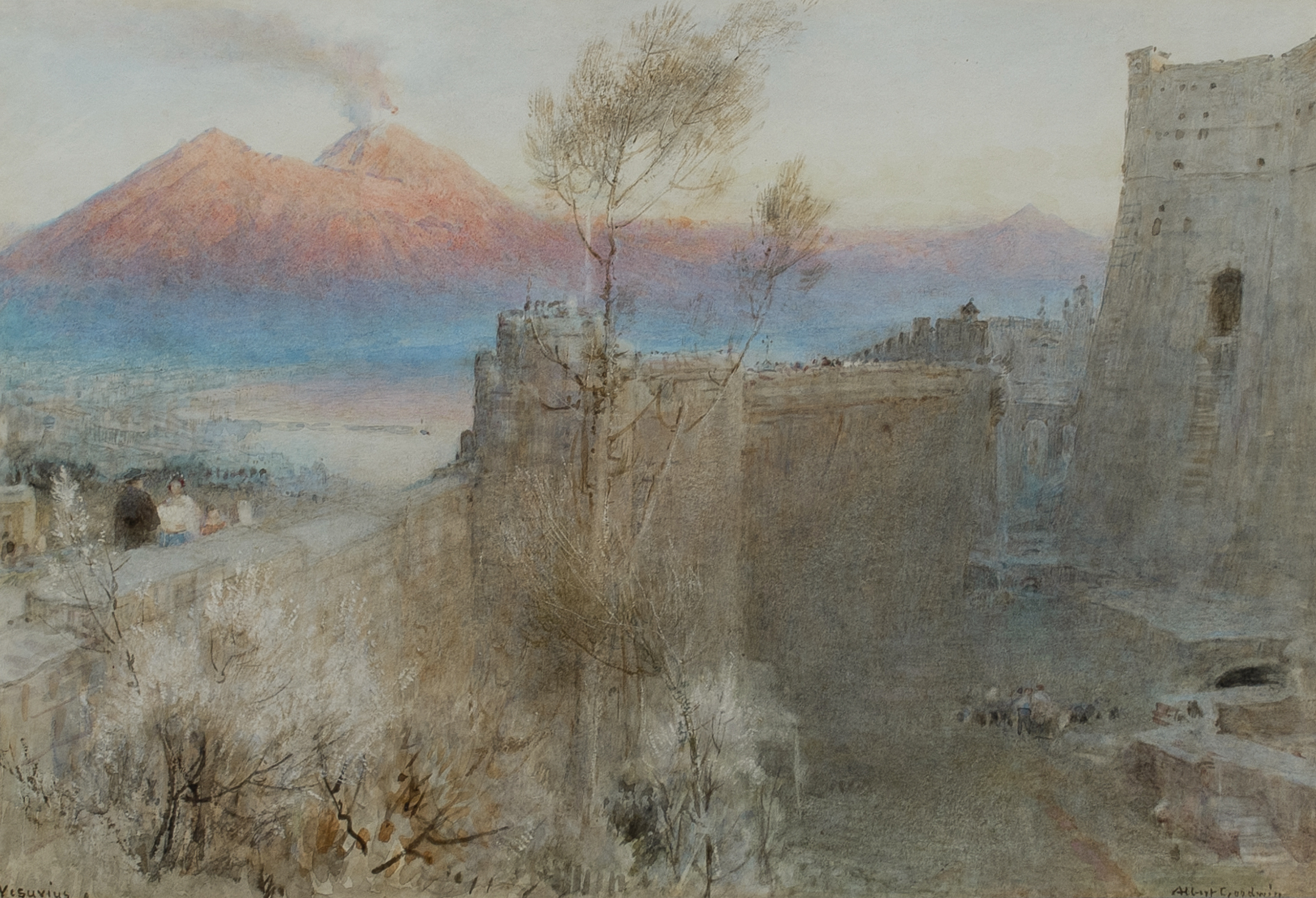 Signed Albert Goodwin (lower right) and inscribed Vesuvius (lower left)