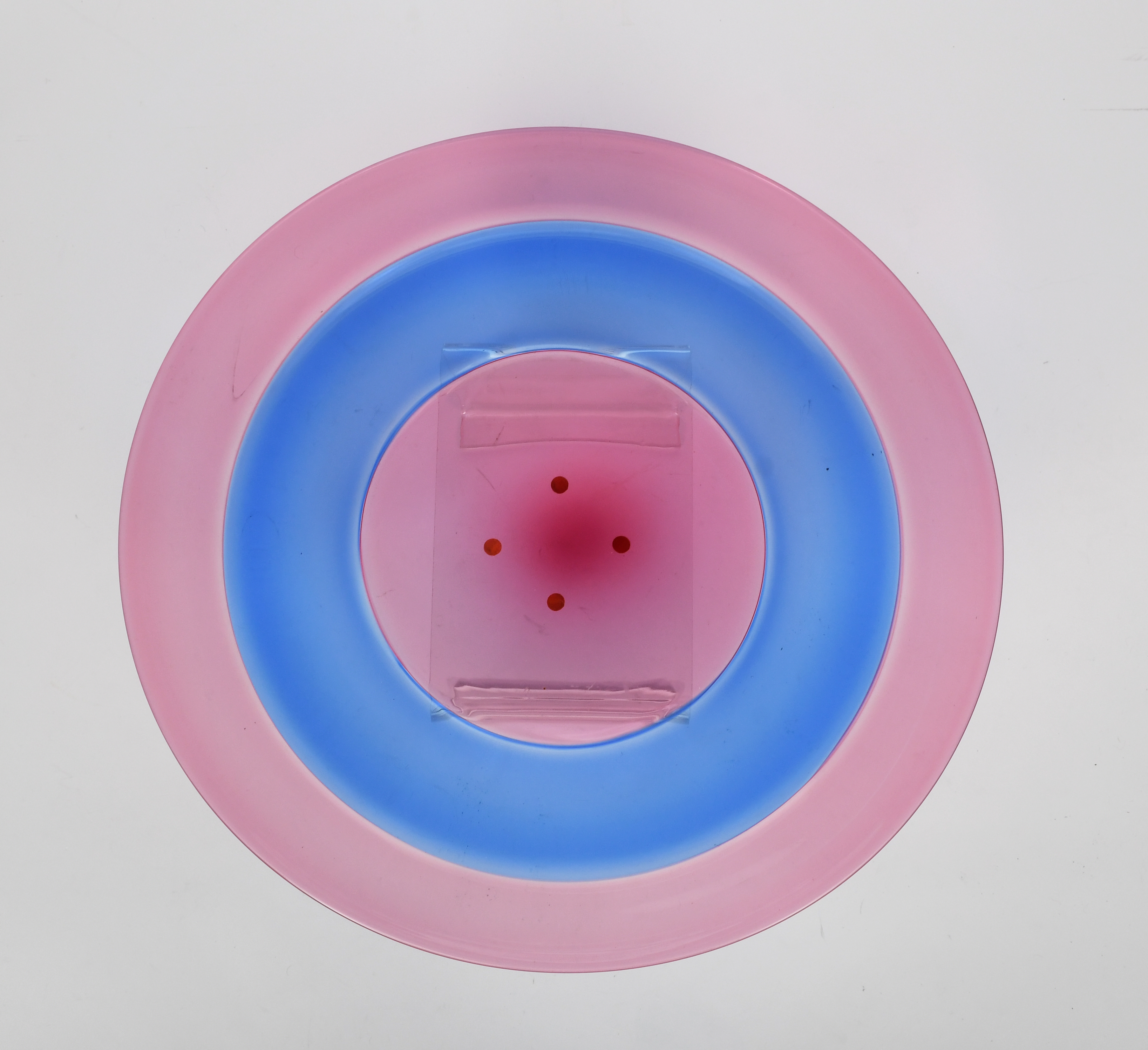 A large Murano glass dish by Gino Onesto, dated 2000, red and blue bands,
