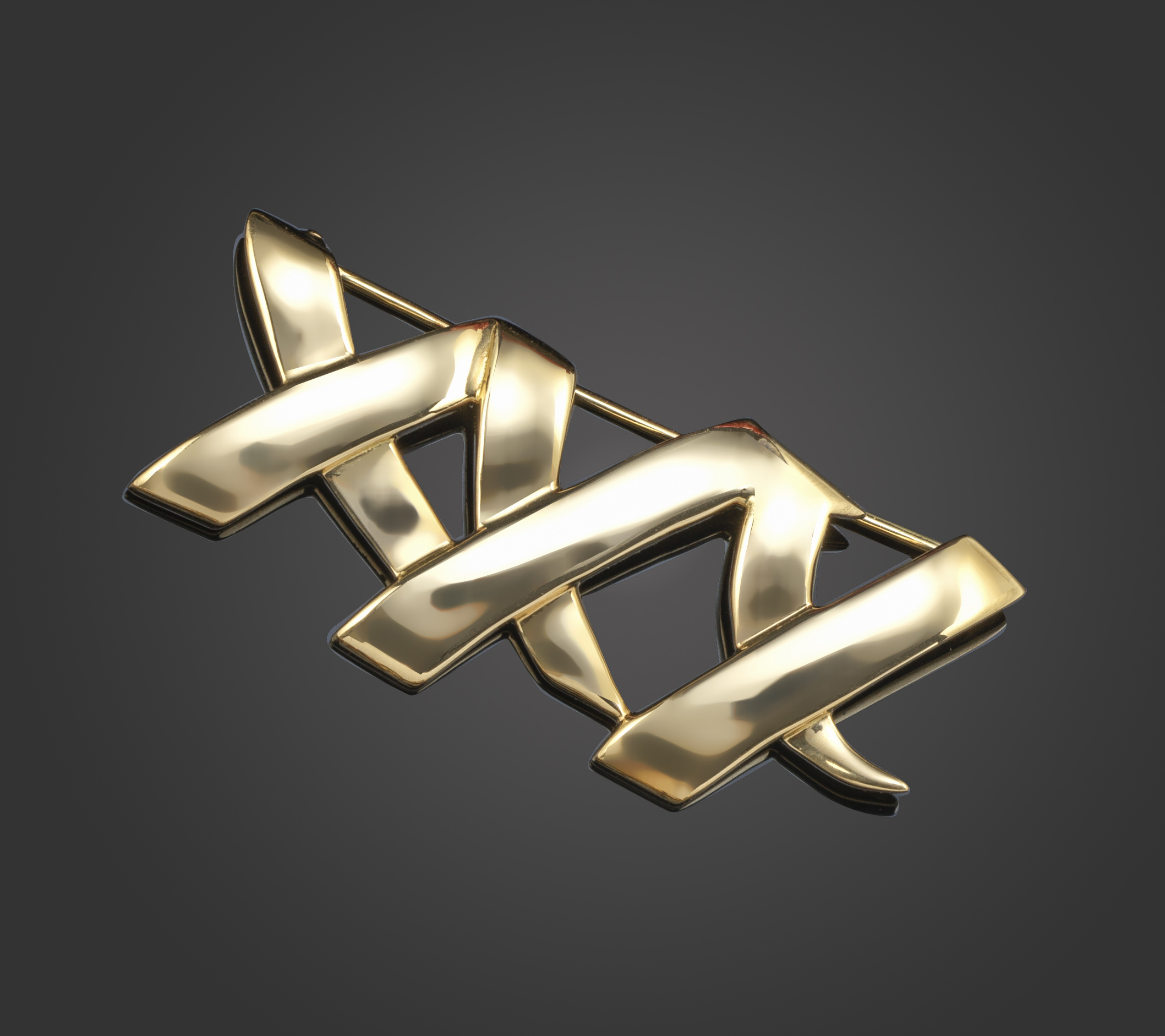 Paloma Picasso for Tiffany & Co, a gold 'Paloma's Graffiti X' brooch, designed as three 'X' letters, signed Paloma Picasso and Tiffany & Co, stamped 18ct and 750, gross weight 11g, length 4.8cm