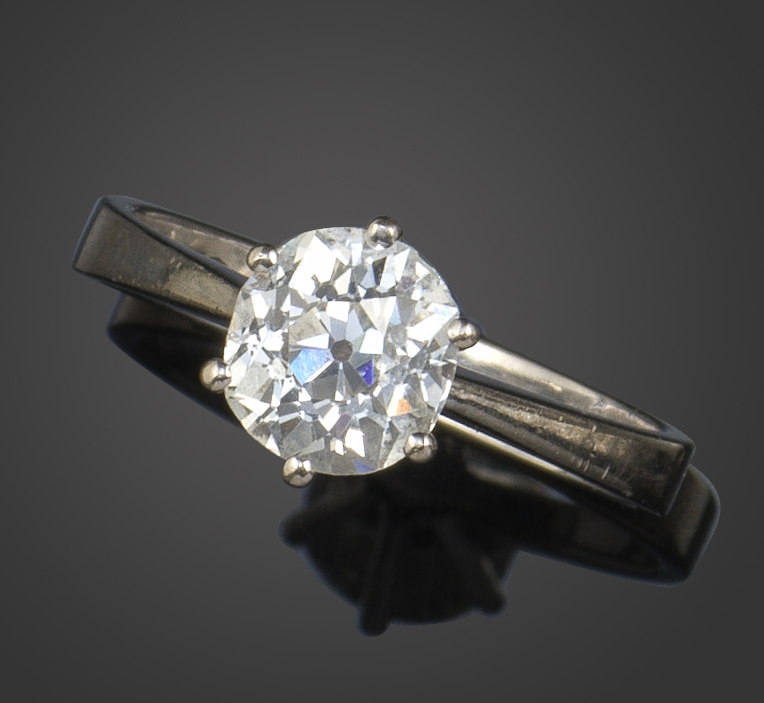 A diamond solitaire ring, the old oval-shaped diamond weighing approximately 1.10cts, claw-set in white gold, stamped 14k, inner re-sizing bands, approximately size K