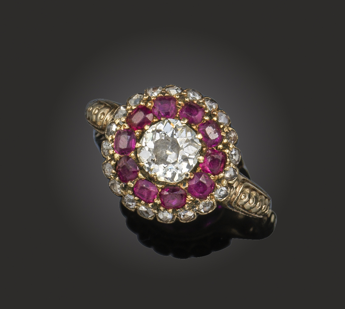 A mid 19th century ruby and diamond cluster ring