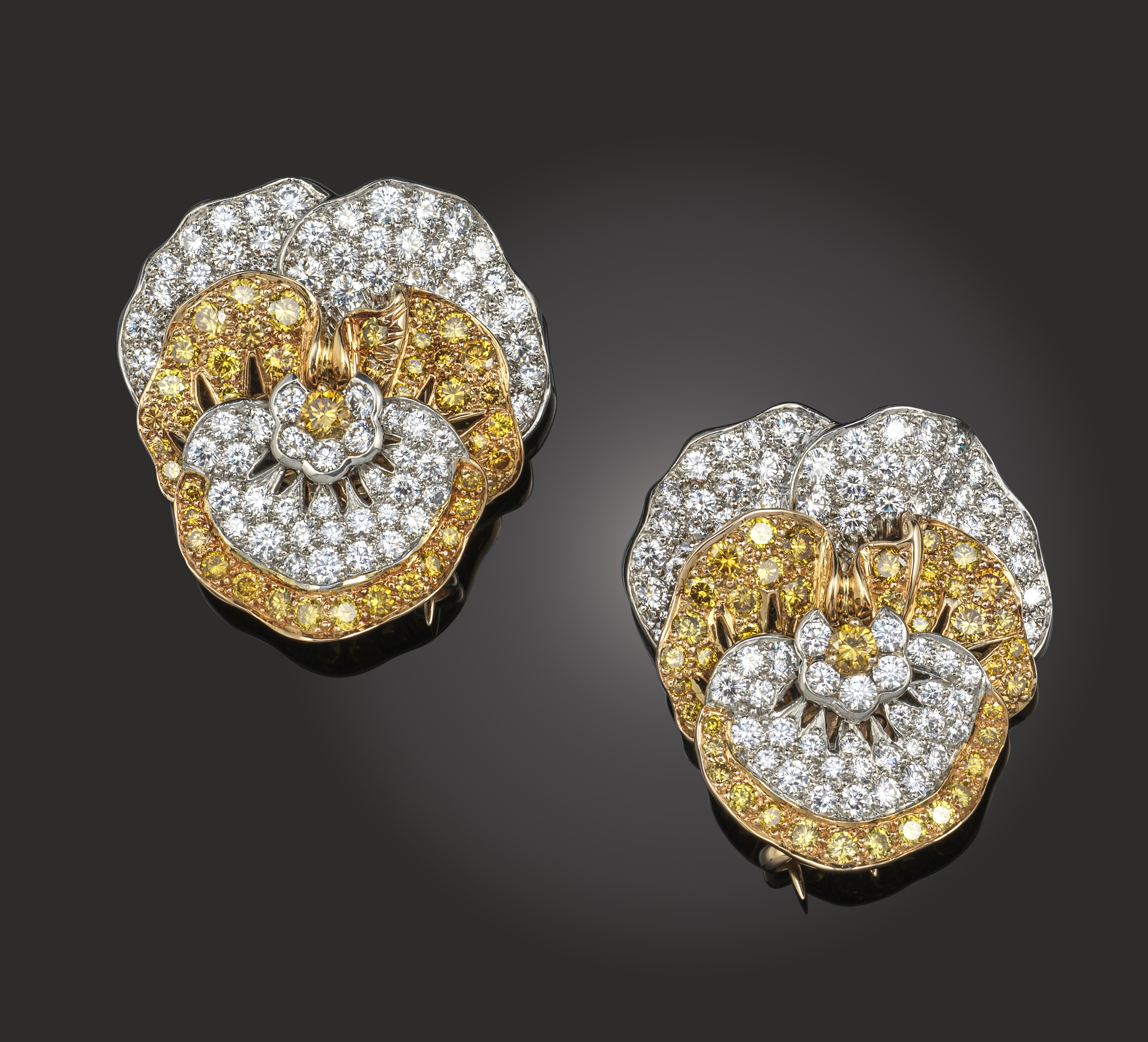 Oscar Heyman & Brothers, a pair of yellow and white diamond brooches
