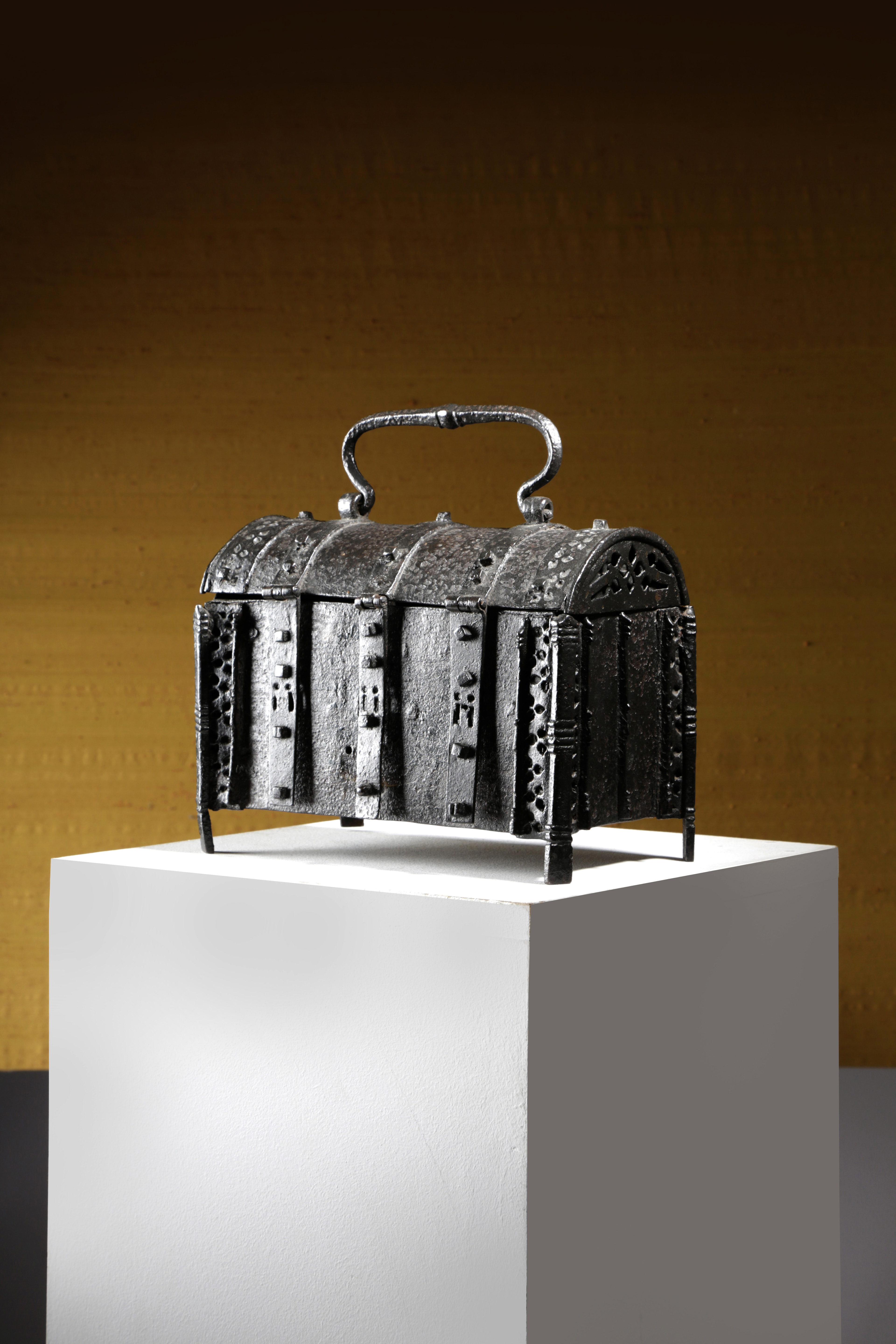 A RARE FRENCH LATE MEDIEVAL IRON CASKET