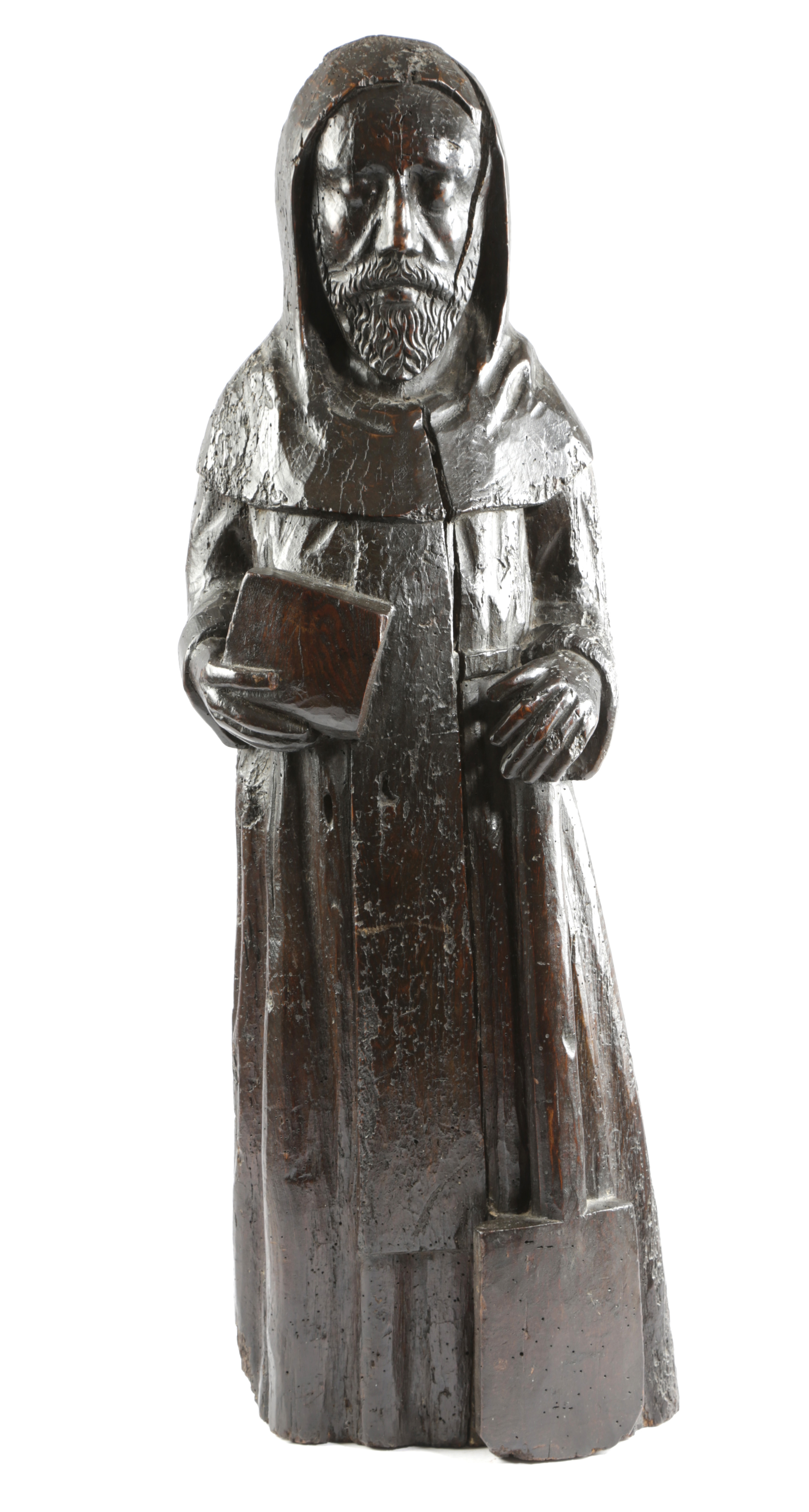 A LARGE MEDIEVAL ELM FIGURE OF ST FIACRE