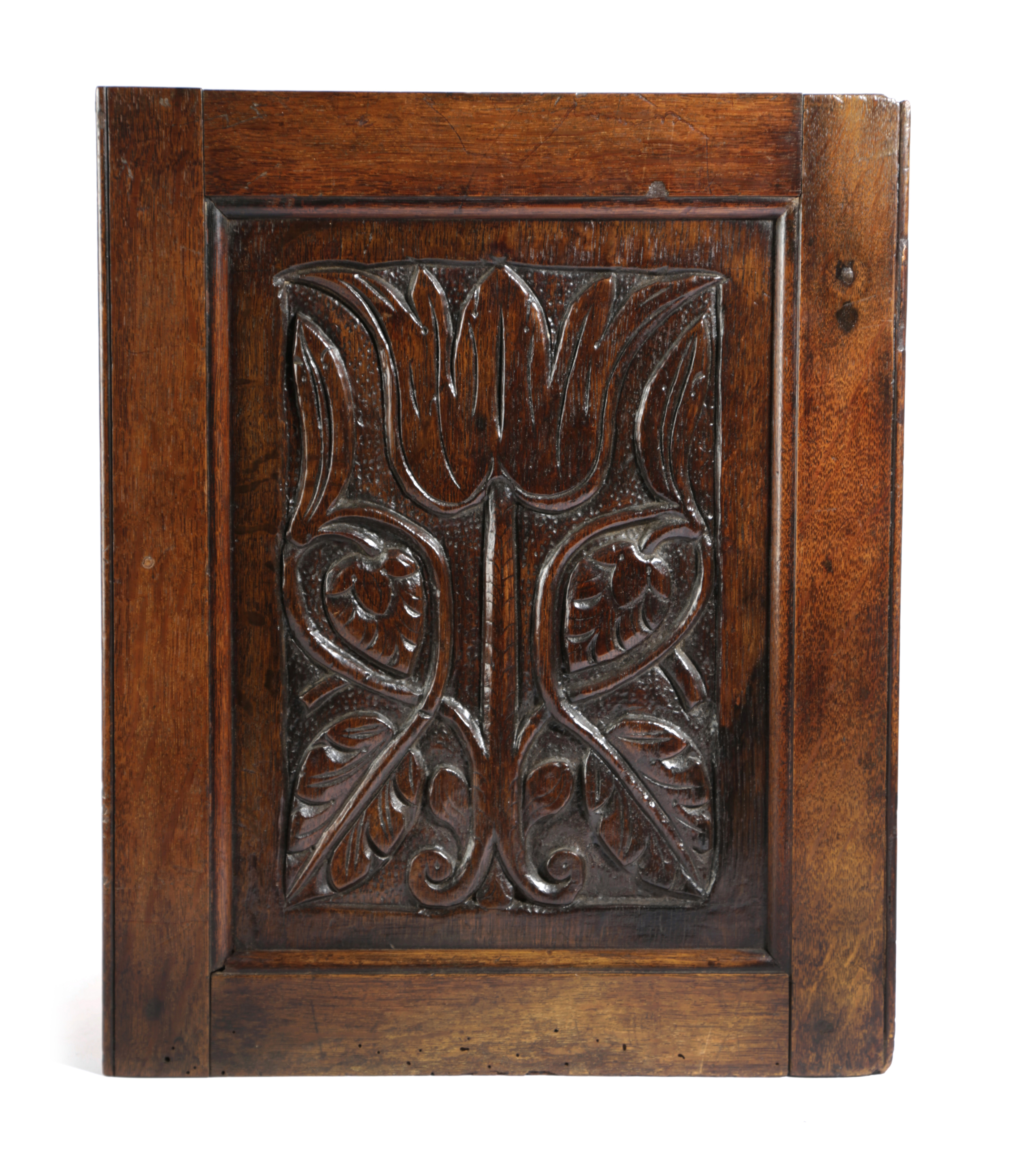 A CHARLES II CARVED OAK PANEL