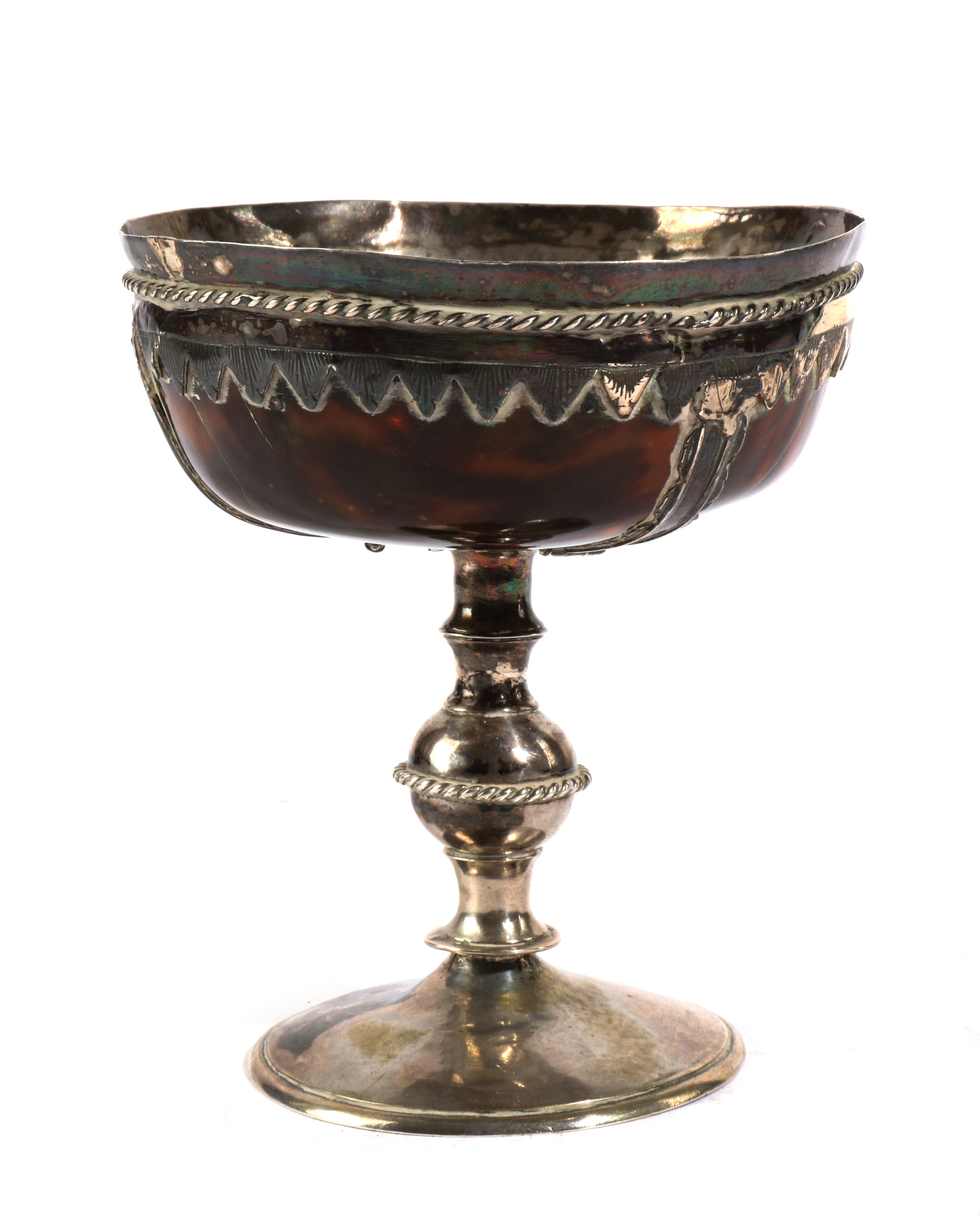 λ A TORTOISESHELL AND SILVER MOUNTED CHALICE