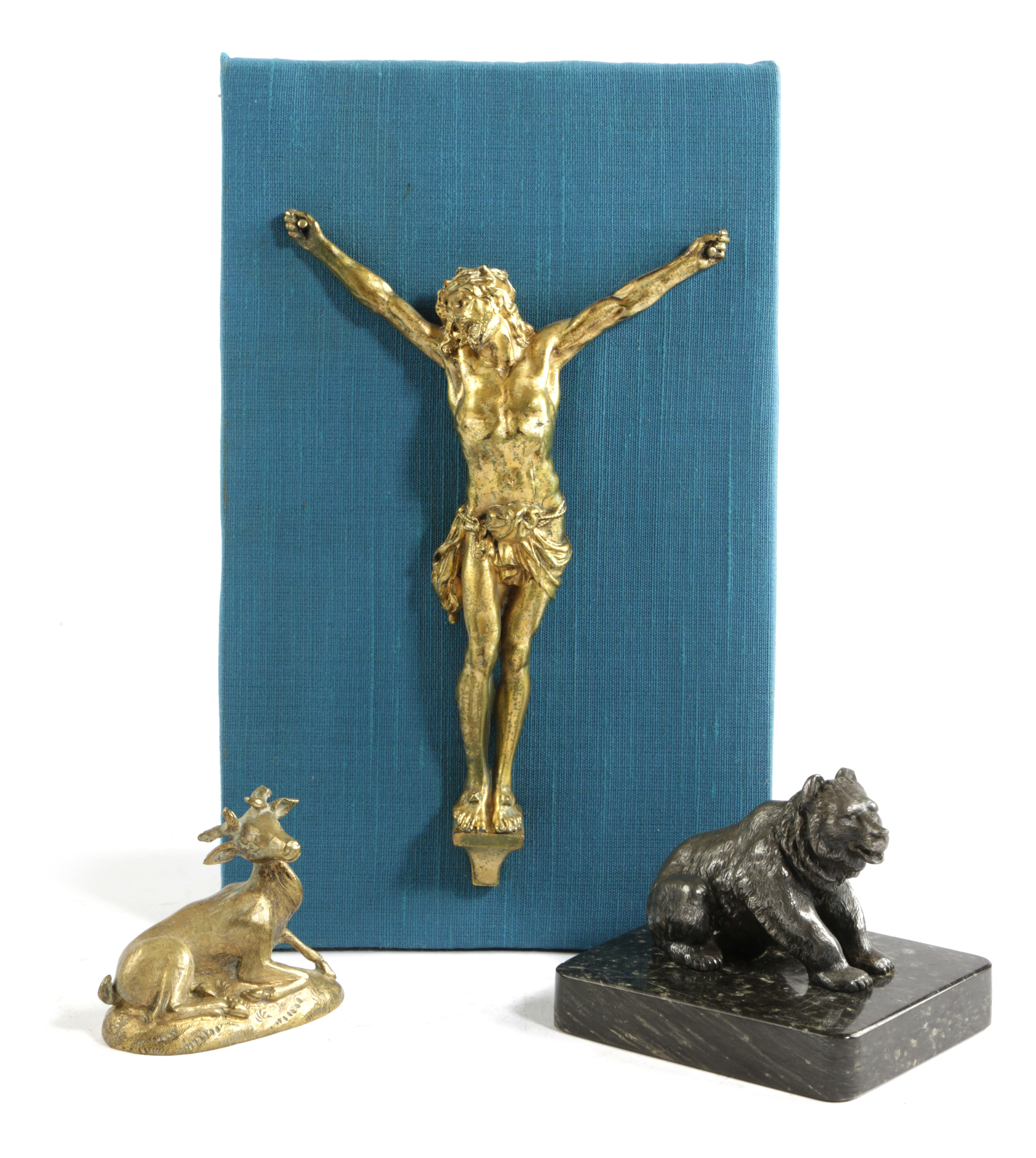 together with a gilt brass figure of a recumbent deer and a base metal figure of a seated bear (3)