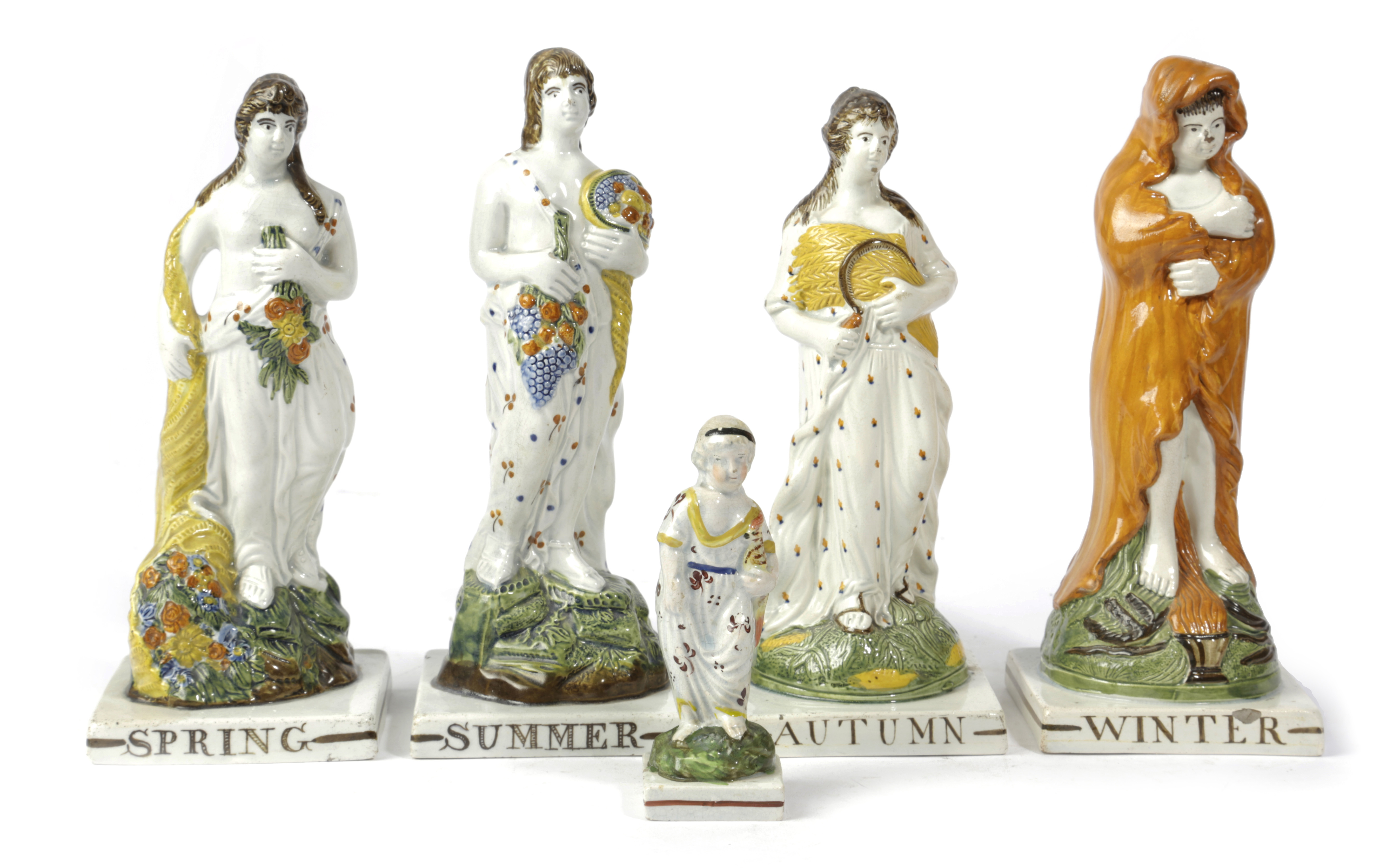 A MATCHED SET OF FOUR PEARLWARE FIGURES EMBLEMATIC OF THE SEASONS