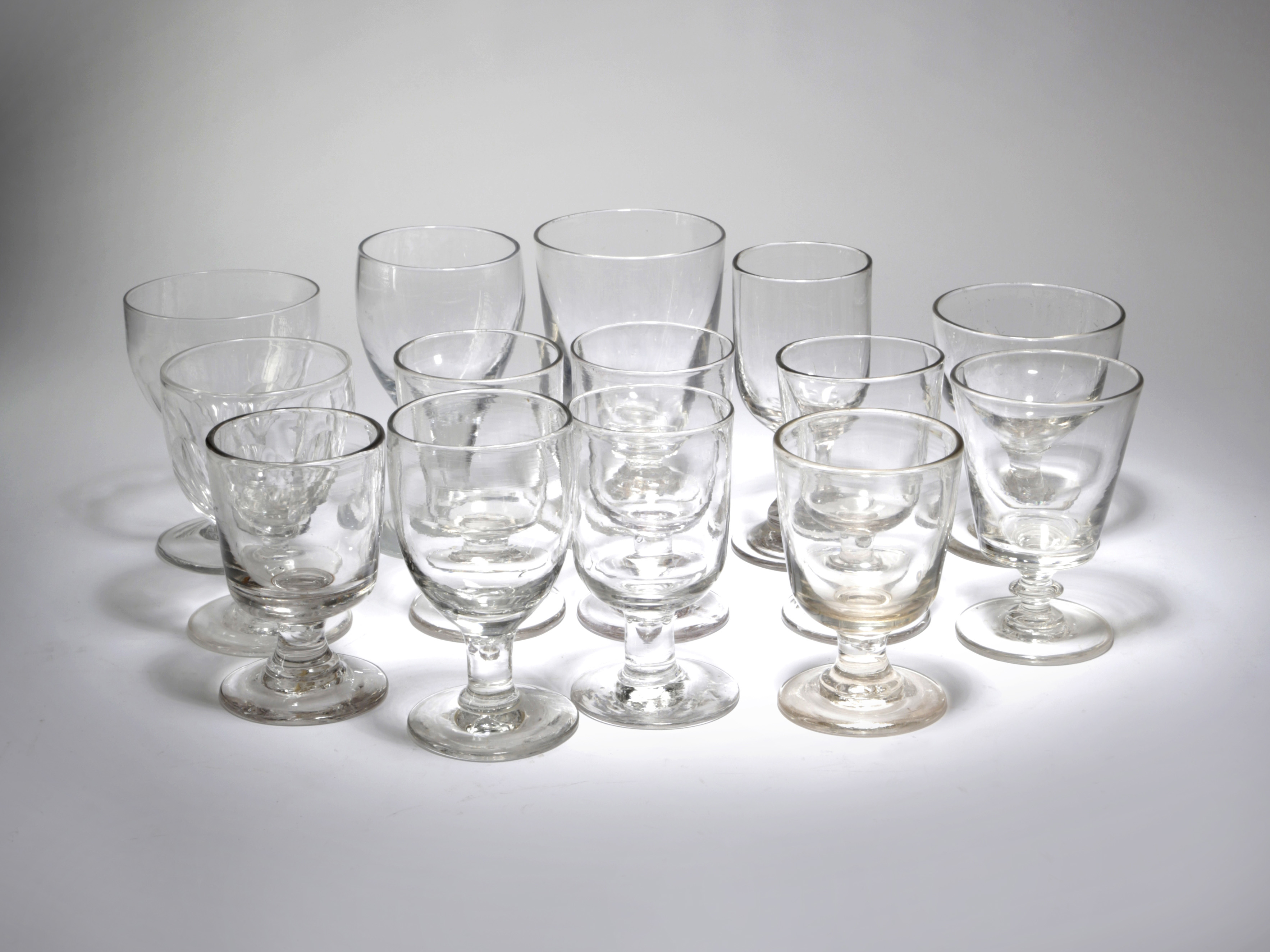 A COLLECTION OF FOURTEEN GLASS RUMMERS