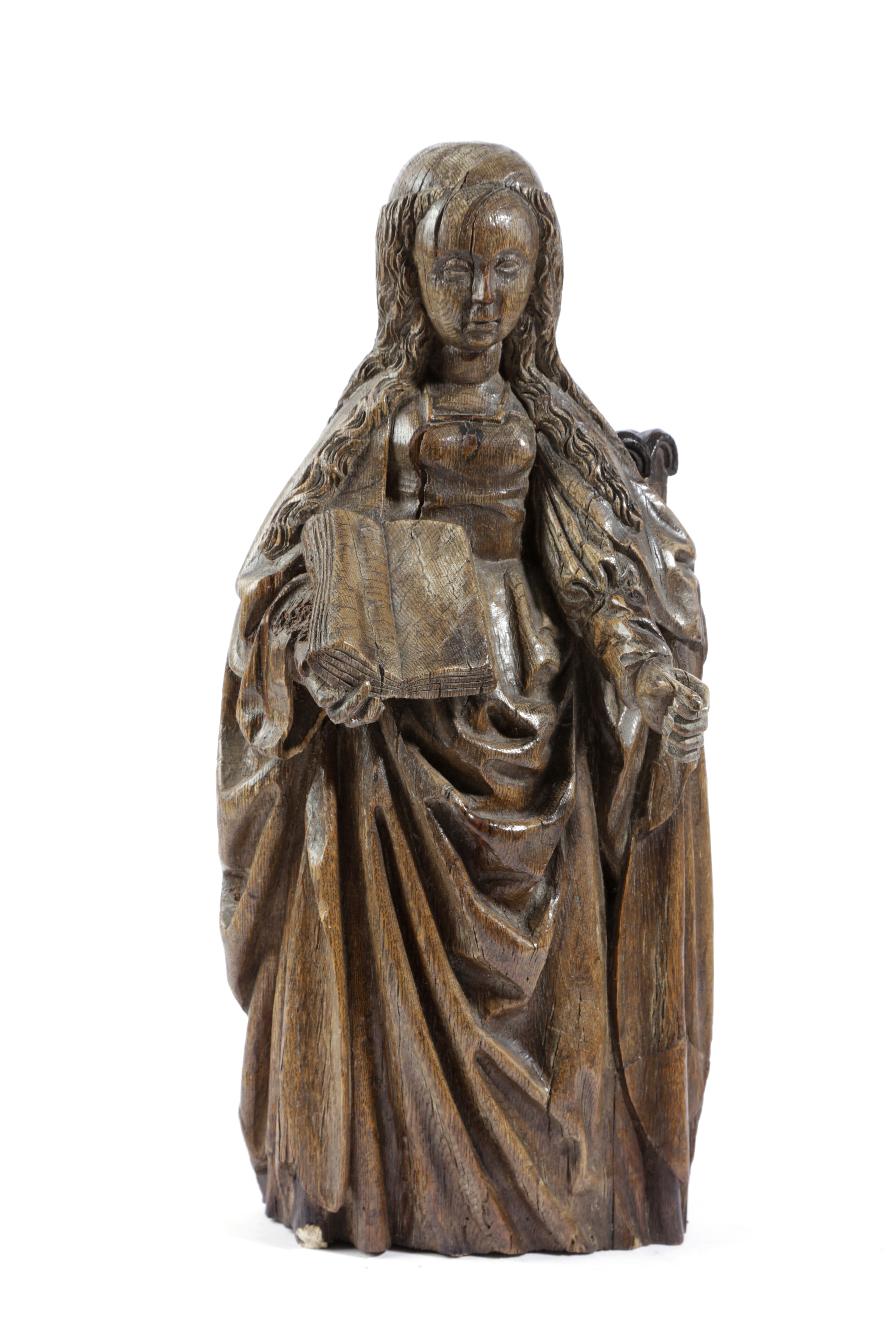A NETHERLANDISH OAK FIGURE OF ST BARBARA