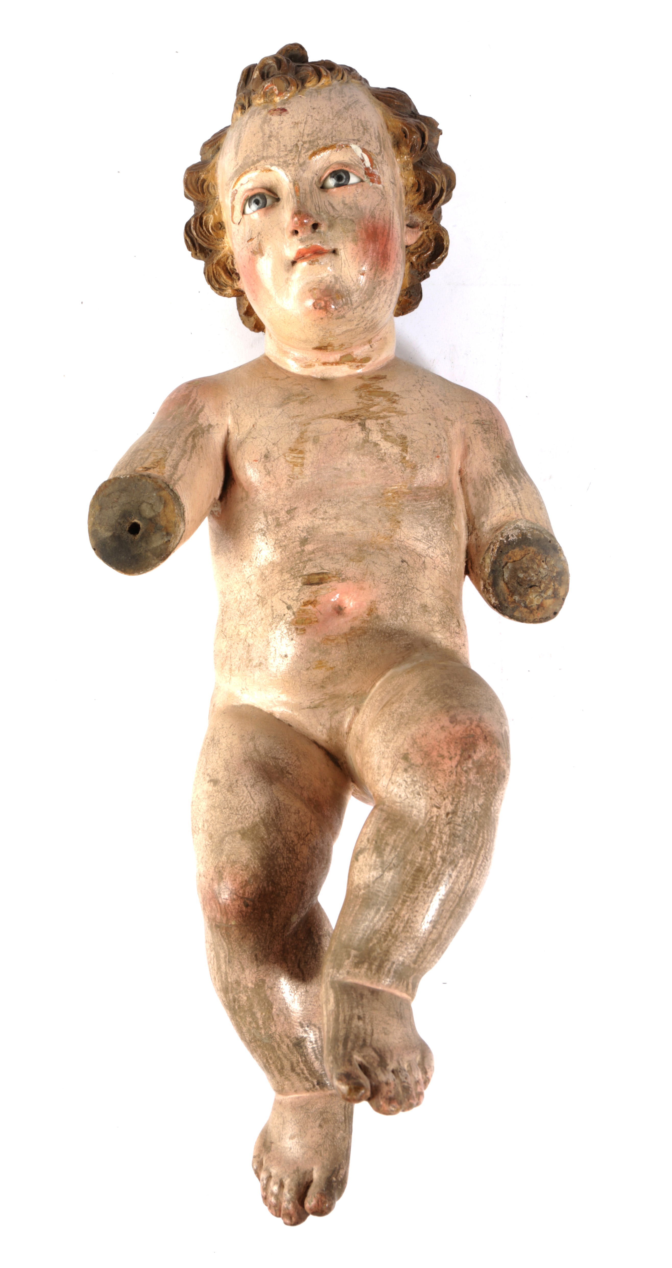 A BAROQUE CARVED AND PAINTED FIGURE OF THE CHRIST CHILD