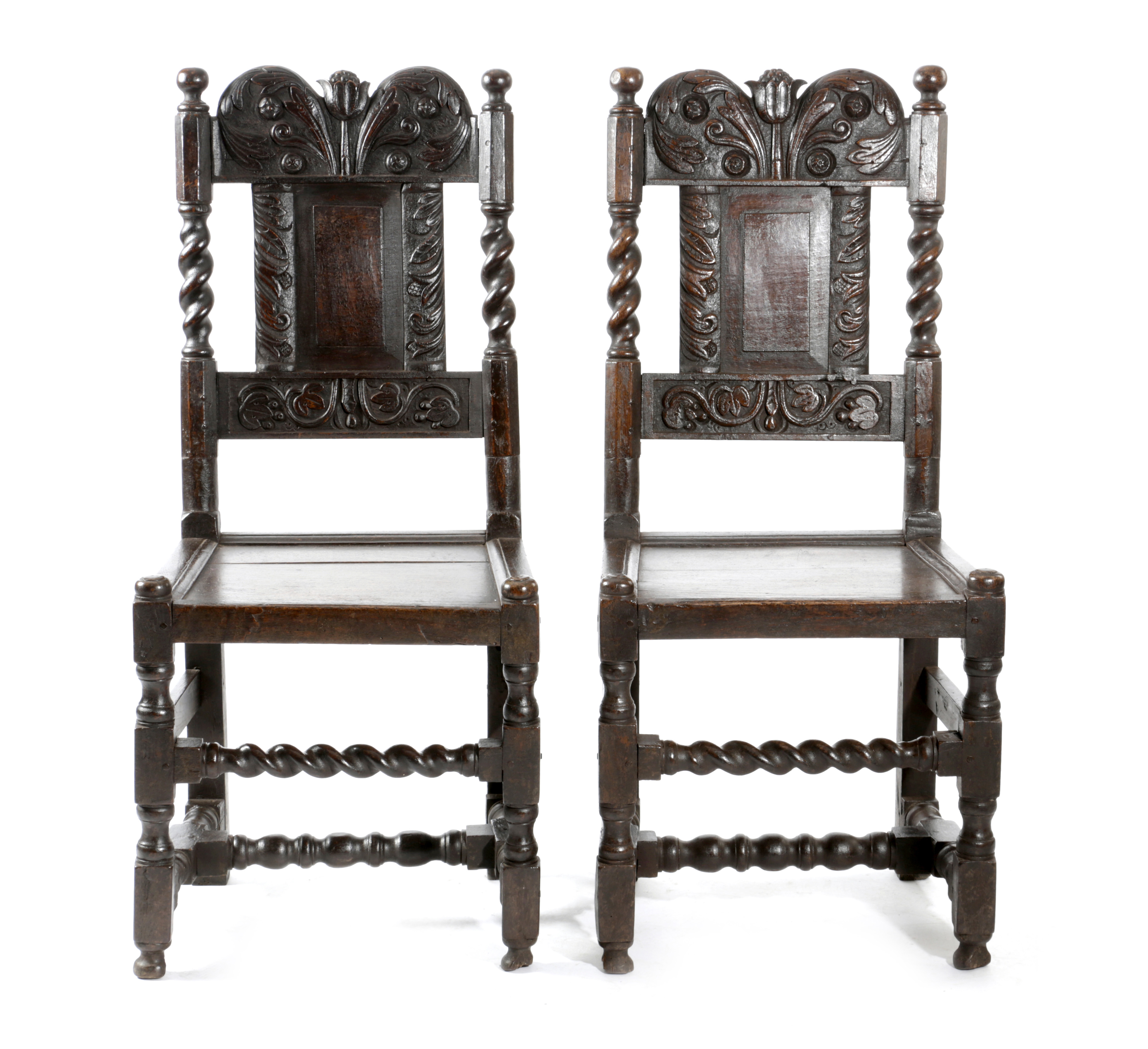 A PAIR OF CHARLES II OAK BACKSTOOLS