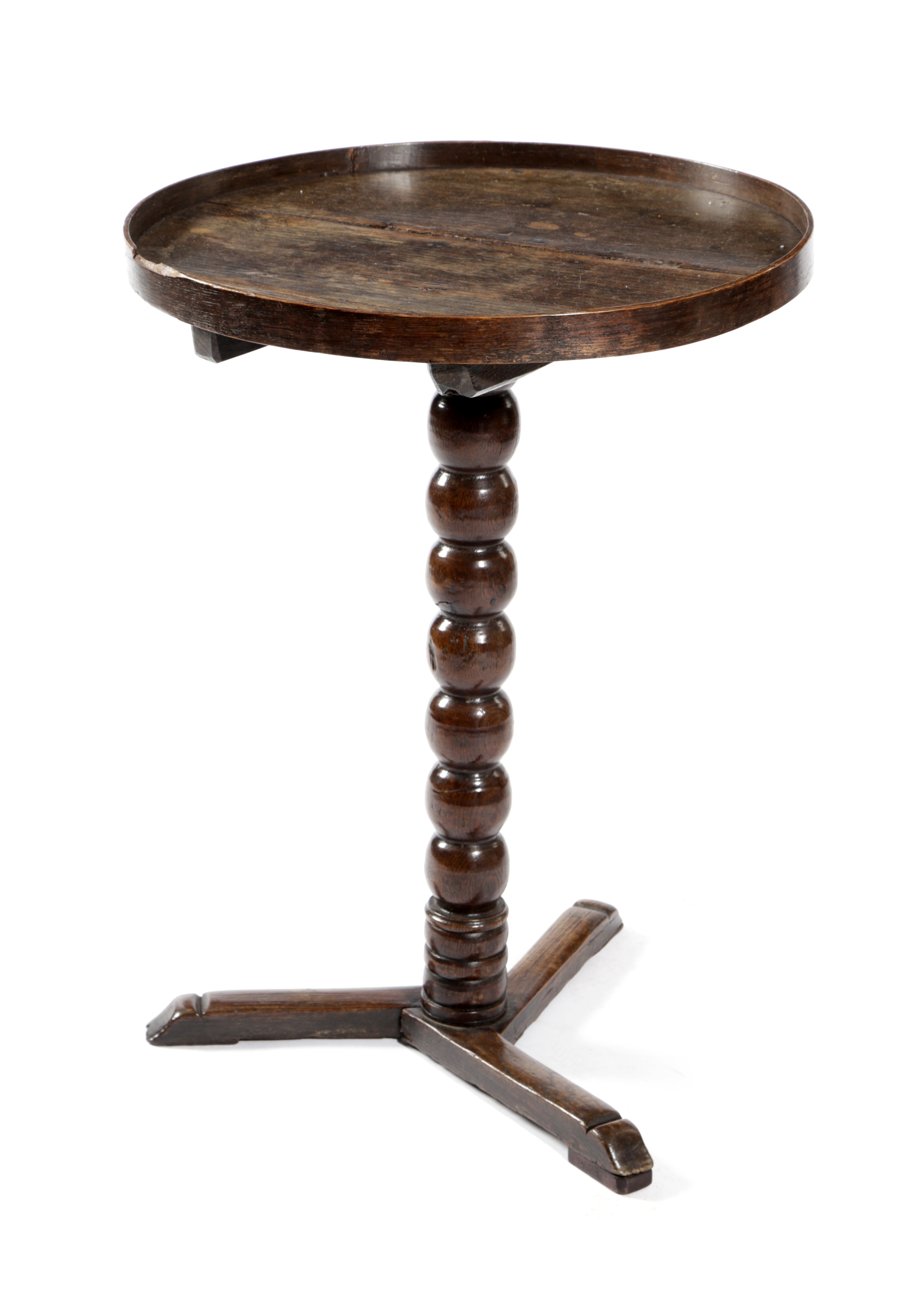 the circular tilt-top with a bentwood gallery, on a bobbin turned stem and stylised feet