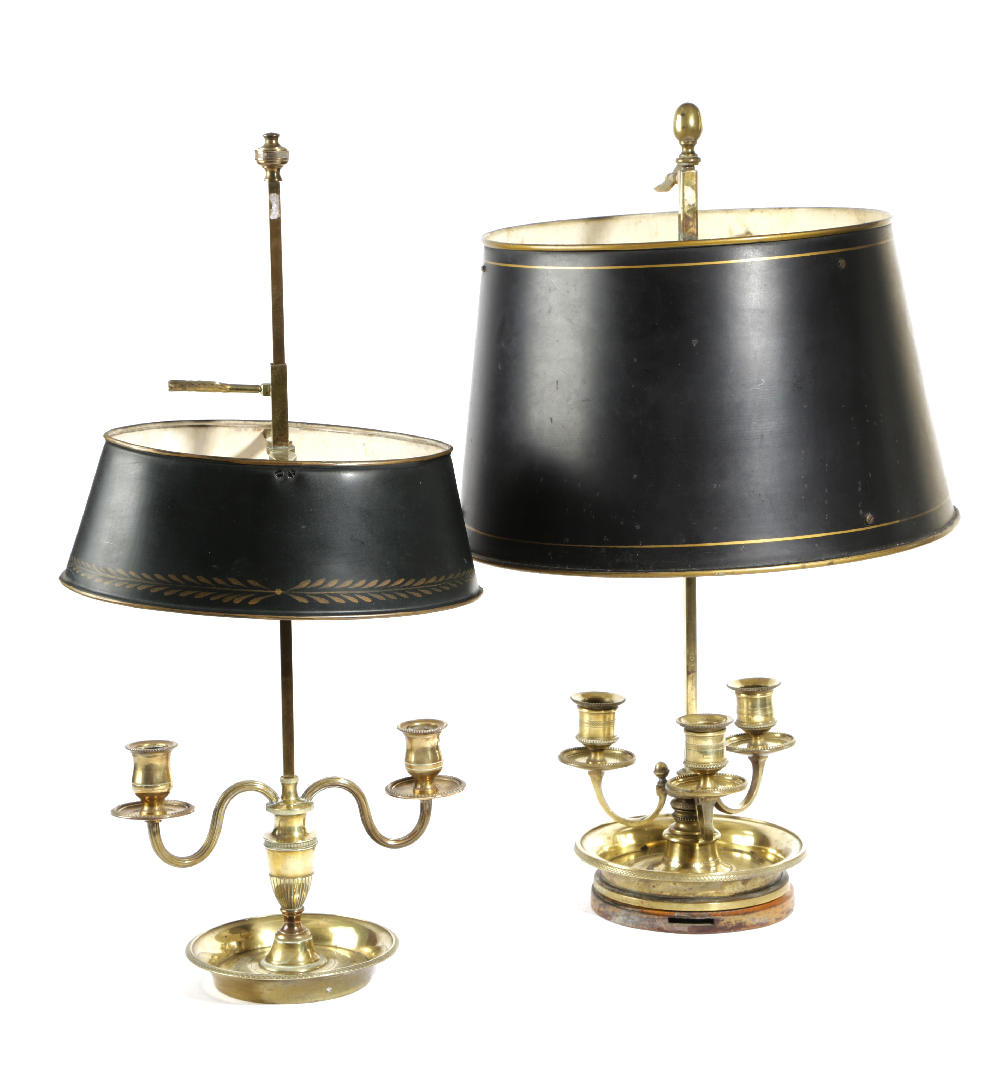 TWO FRENCH BRASS BOUILLOTTE LAMPS