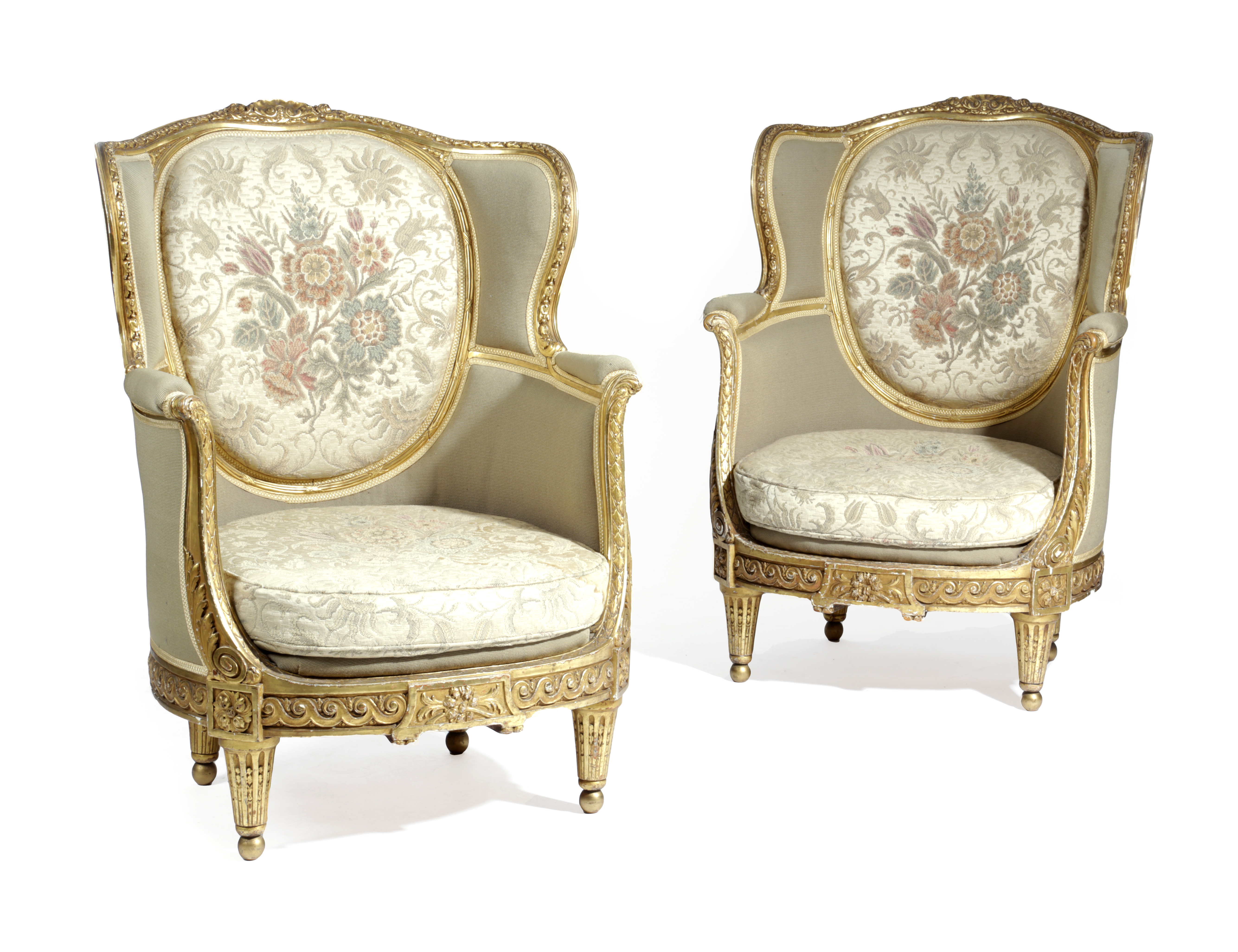 A PAIR OF FRENCH GILTWOOD BERGERES